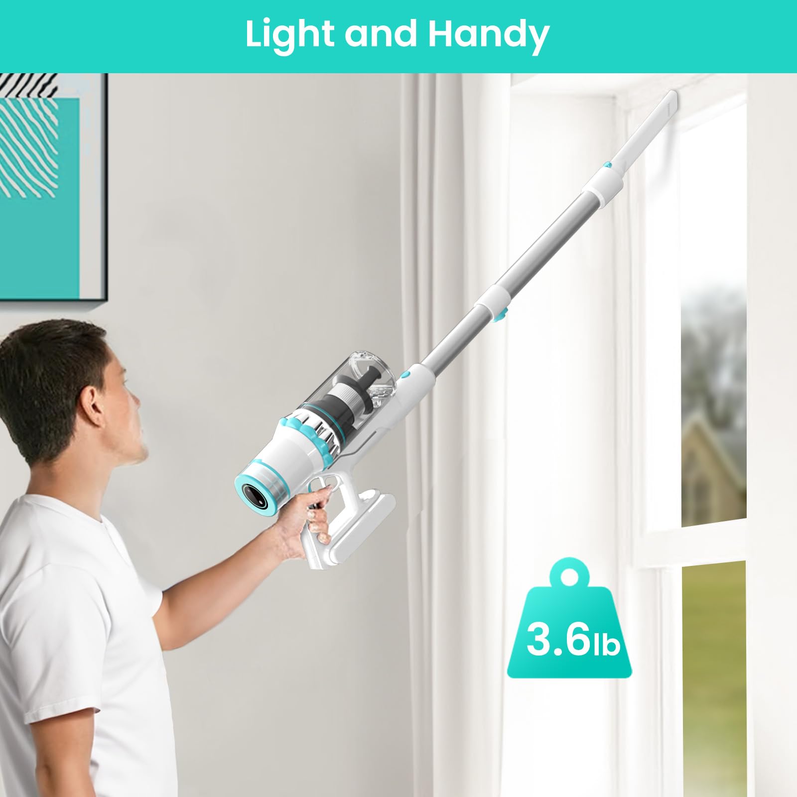 Belife Cordless Vacuum Cleaner, 38Kpa 450W Stick Vacuum Cleaners For Home Carpet Hardwood Floor, Wireless Household Vaccum For Pet Hair With Led Touch Display, Up To 45Mins Runtime White