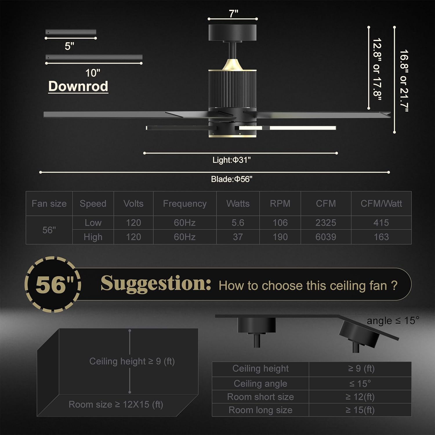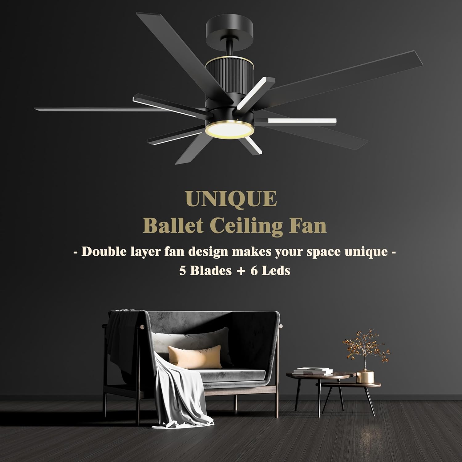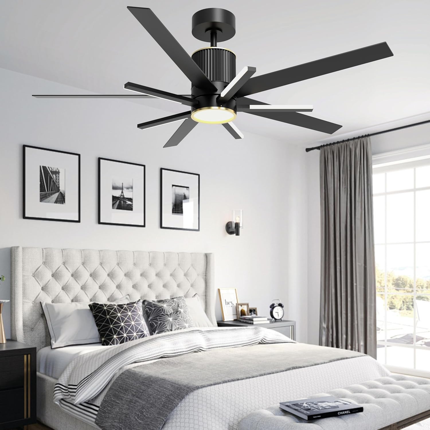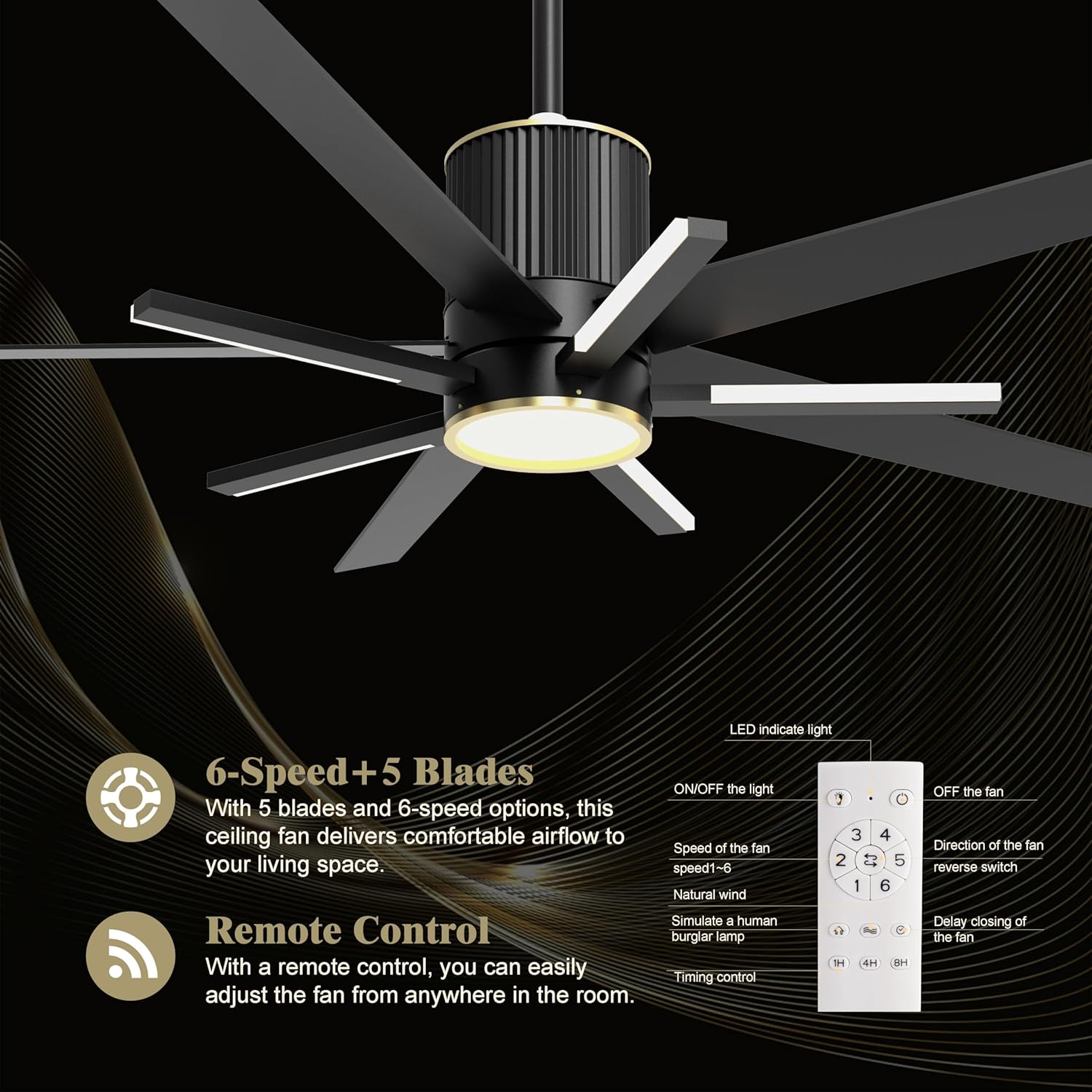 Black Ceiling Fan With Light And Remote,Black And Gold Ceiling Fans With Lights,56 Inch Modern Ceiling Fan With Light For Living