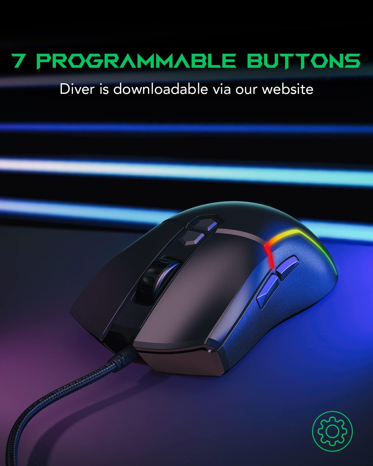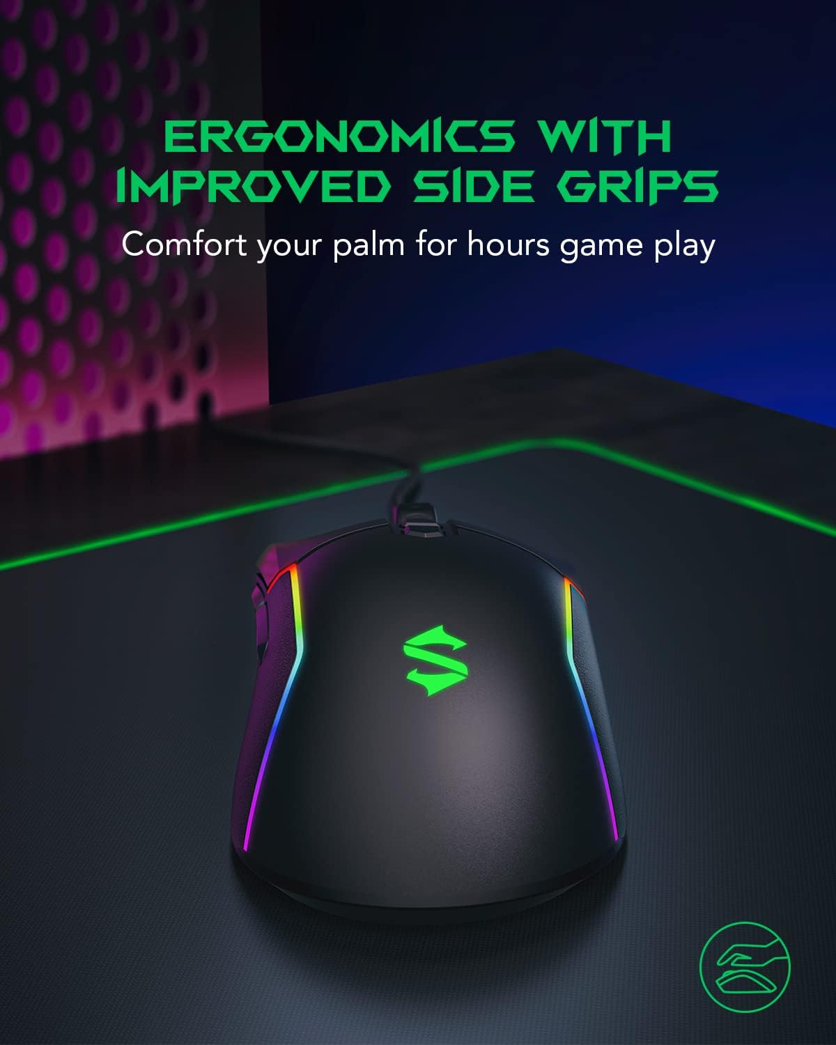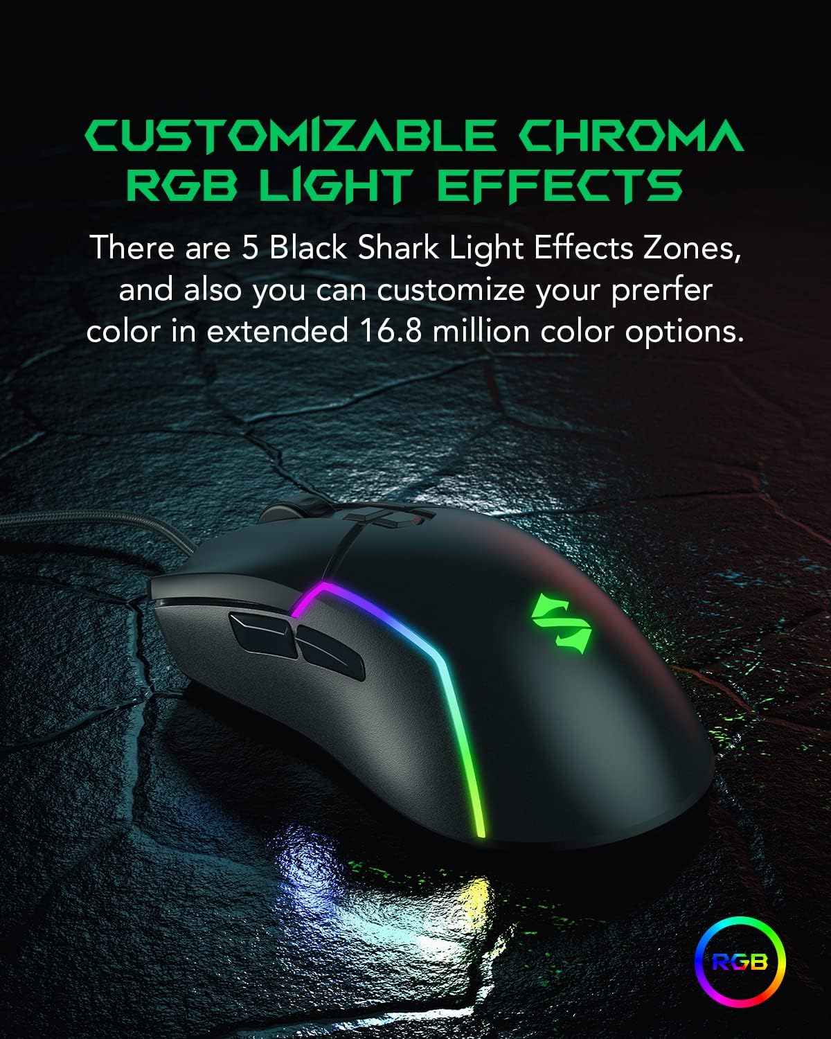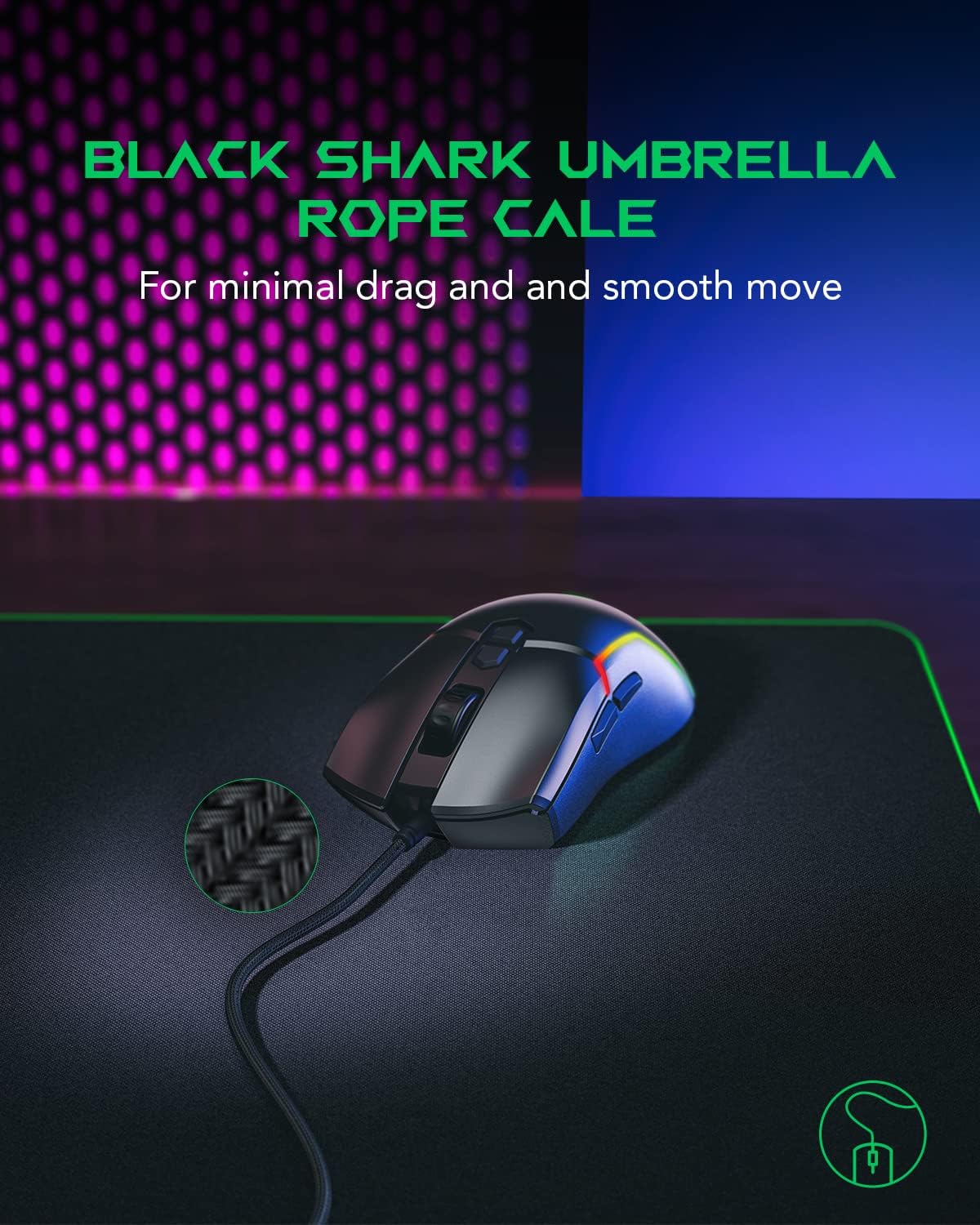Black Shark Gaming Mouse Wired, USB Computer Ergonomic Mouse with 7 Adjustable DPI Up to 10,000, 7 Programmable Buttons, 5 Modes RGB Backlight, Optical Gamer Mice for Windows PC Laptop Mac