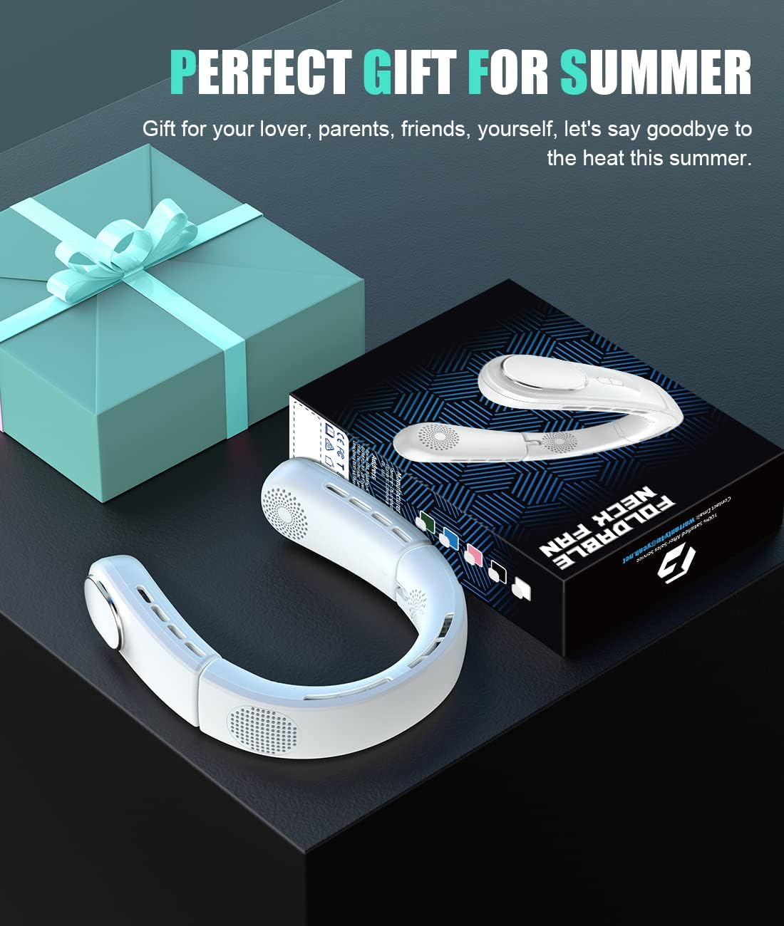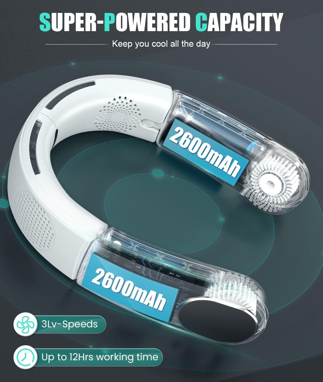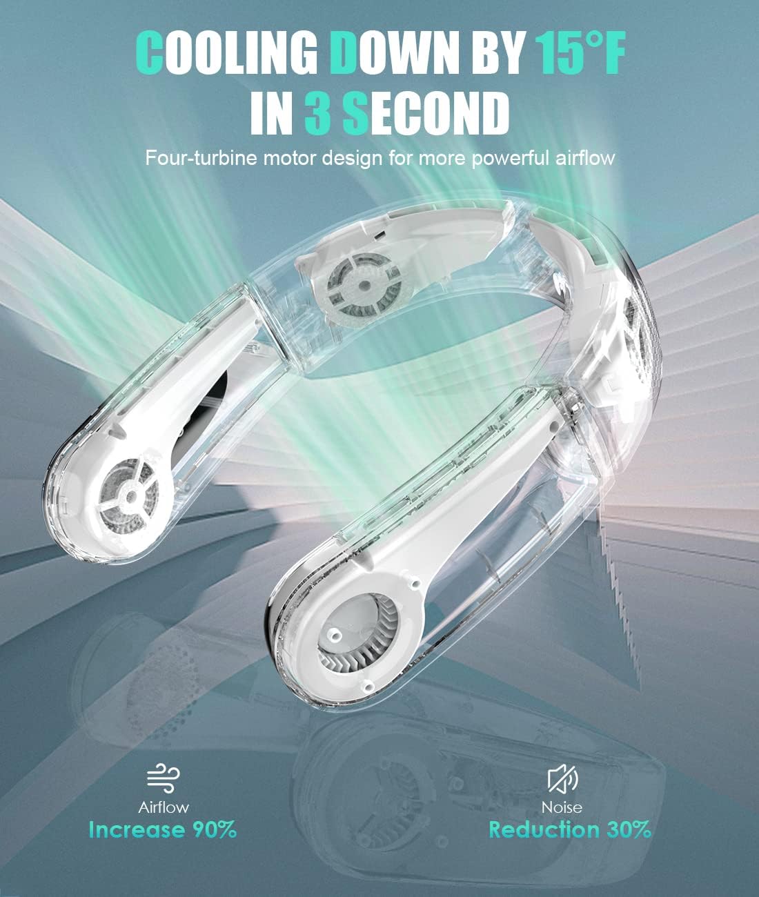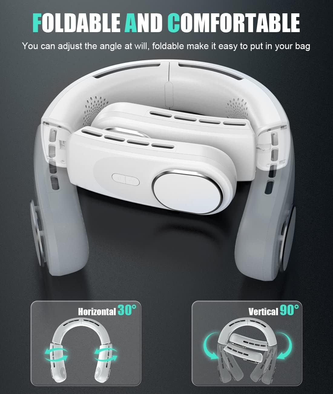 Bladeless Neck Fan Personal Portable Fan Chillgo Wearable Cooling Neck Air Conditioner Max 12Hrs, 4 Vent Airflow +90, Foldable
