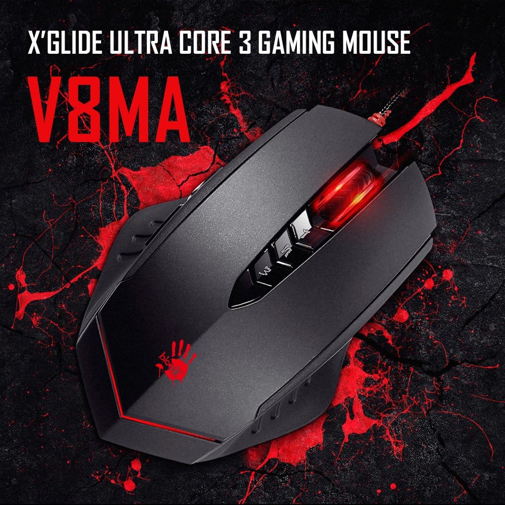 BLOODY V8MA Ultra Core 3 Optical PC Gaming Mouse with X'Glide Metal Mouse Feet for Precision Handling - 8 Programmable Buttons for Macros/Scripting/Automation - Ideal for Palm Grip - 3200DPI