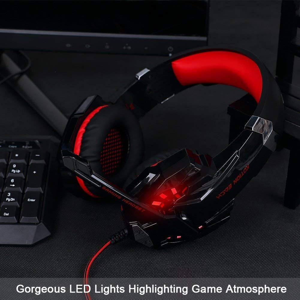 BlueFire Stereo Gaming Headset for PS4, PS5, PC, Xbox One, Noise Cancelling Over Ear Headphones with Mic, LED Light, Bass Surround, Soft Memory Earmuffs for Laptop Nintendo Switch (Black-Red)