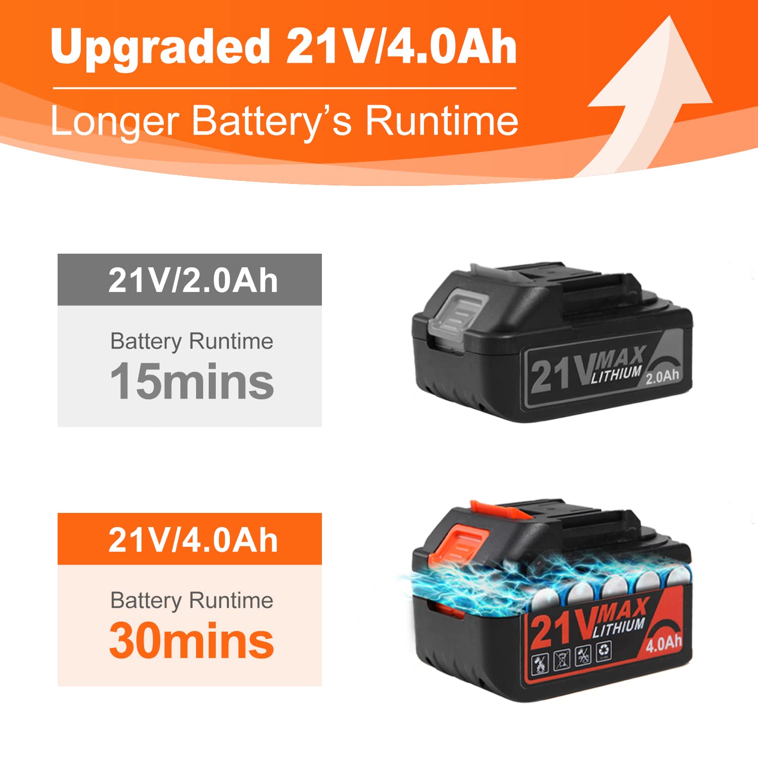 Blütezeit Cordless Leaf Blower, 21V Battery Powered Electric Leaf Blower 320CFM 150MPH (4.0Ah Battery & Charger Included), 6 Variable Speeds, Lightweight for Lawn Care, Snow, Yard, Debris and Dust
