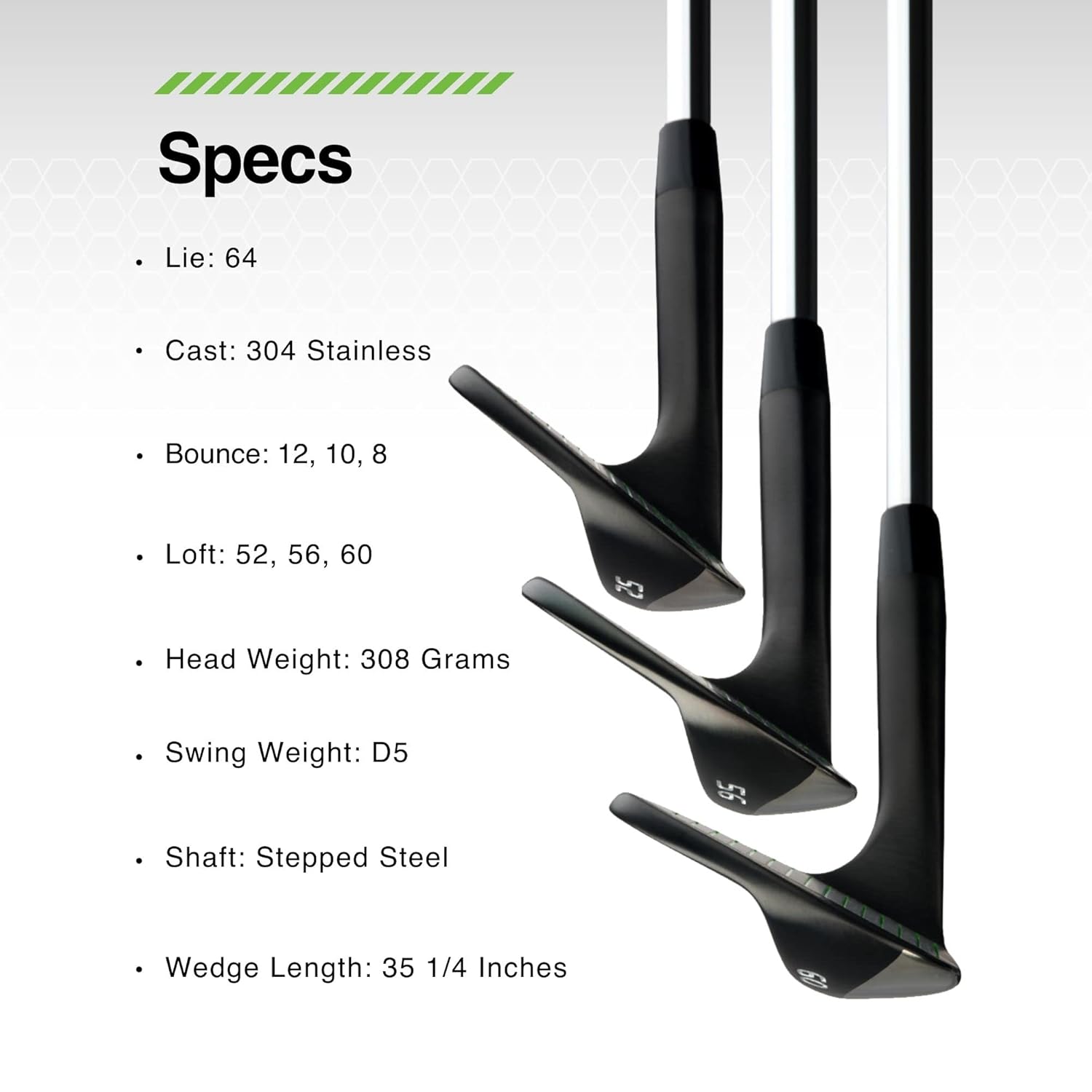 BombTech - Premium Golf Wedge Set - 52, 56, 60 Degrees Golf Wedges - Max Groove for Increased Spin - Black Wedges…