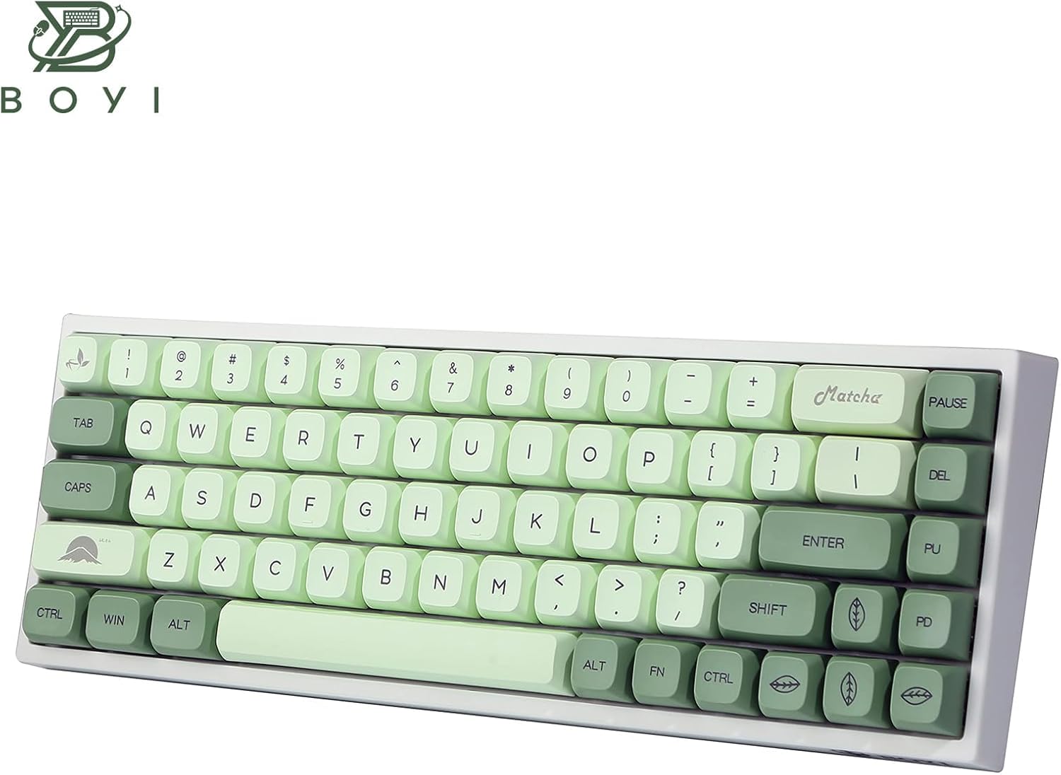 BOYI WK68 Matcha Green Mechanical Keyboard,65% Hot Swap Bluetooth 5.0/2.4G/Wired Type-C Tri-Mode RGB Gaming Keyboard,PBT Sublimation XDA Keycaps Wireless Keyboard for Mac/Win(Gateron Yellow Switch)