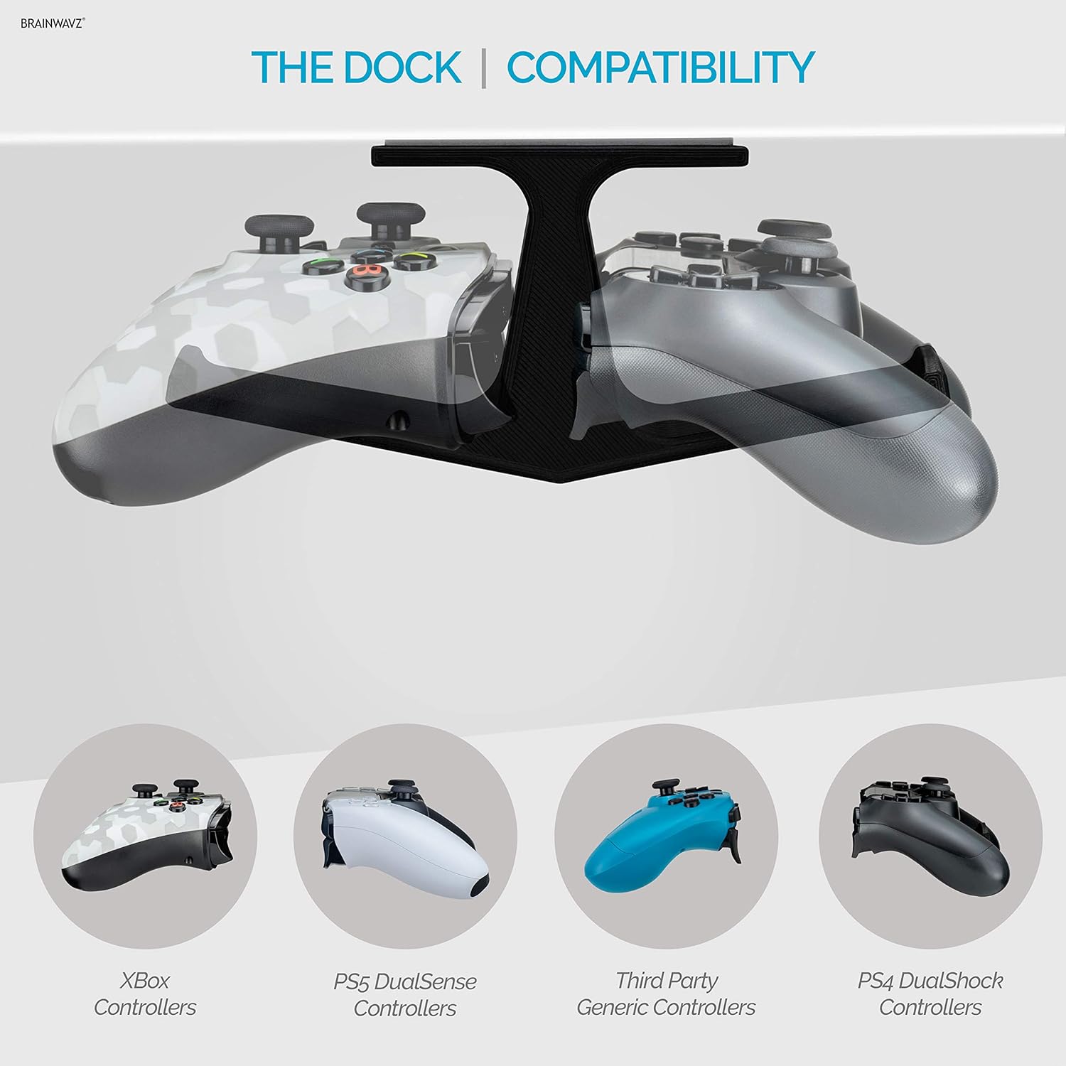 BRAINWAVZ EOL The Dock Dual Game Controller Holder Under The Desk Mount for Xbox Series X, One, PS5, PS4, Switch, Streelseries, PC Gamepad More, No Screws, Easy to Install, Black EOL