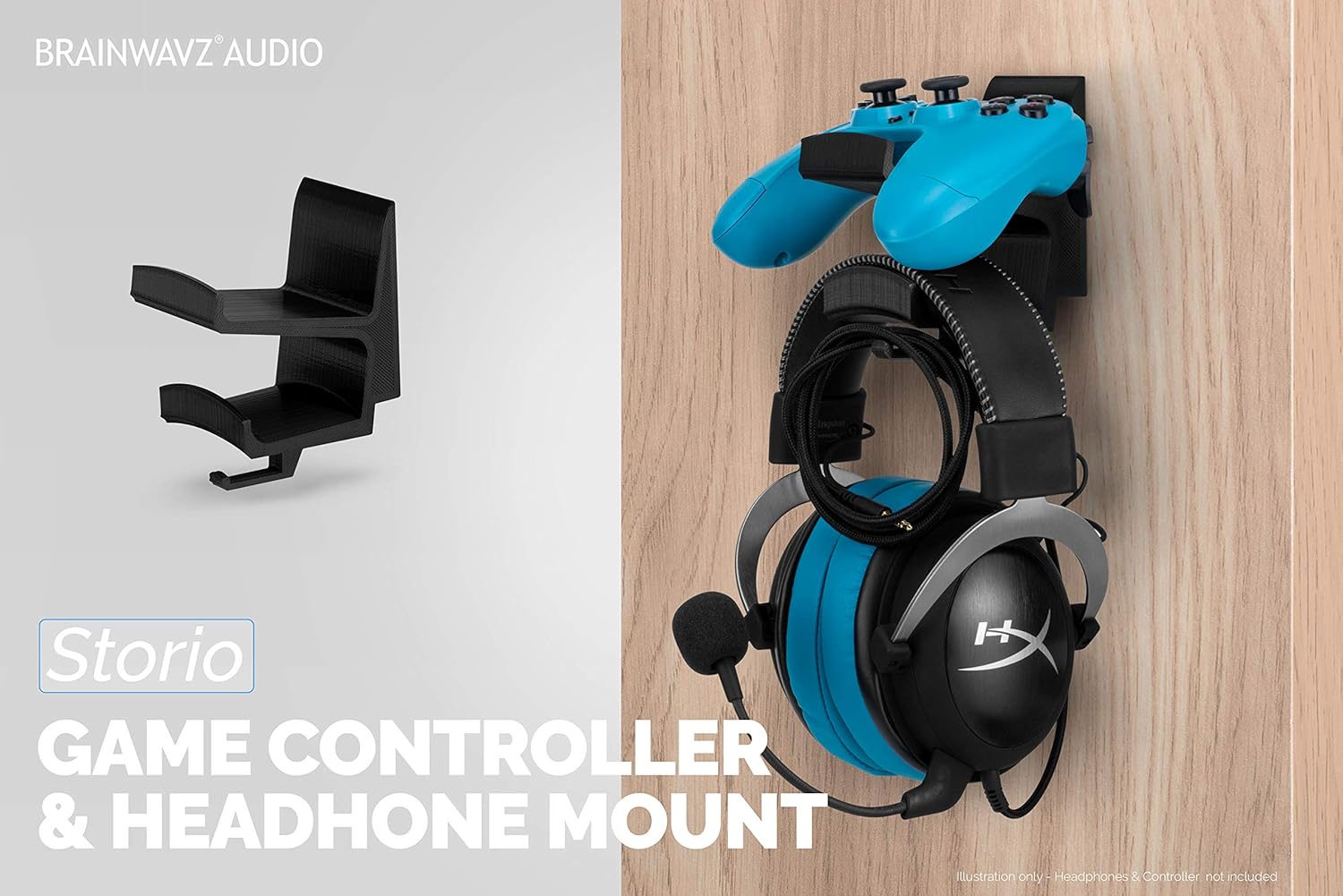 BRAINWAVZ The STORIO - Gamepad Controller & Headphone Hanger Holder Stand - Designed for XBOX ONE, PS4, PS3, PS5, Dualshock, Switch, PC, Steelseries, Steam & More, Black