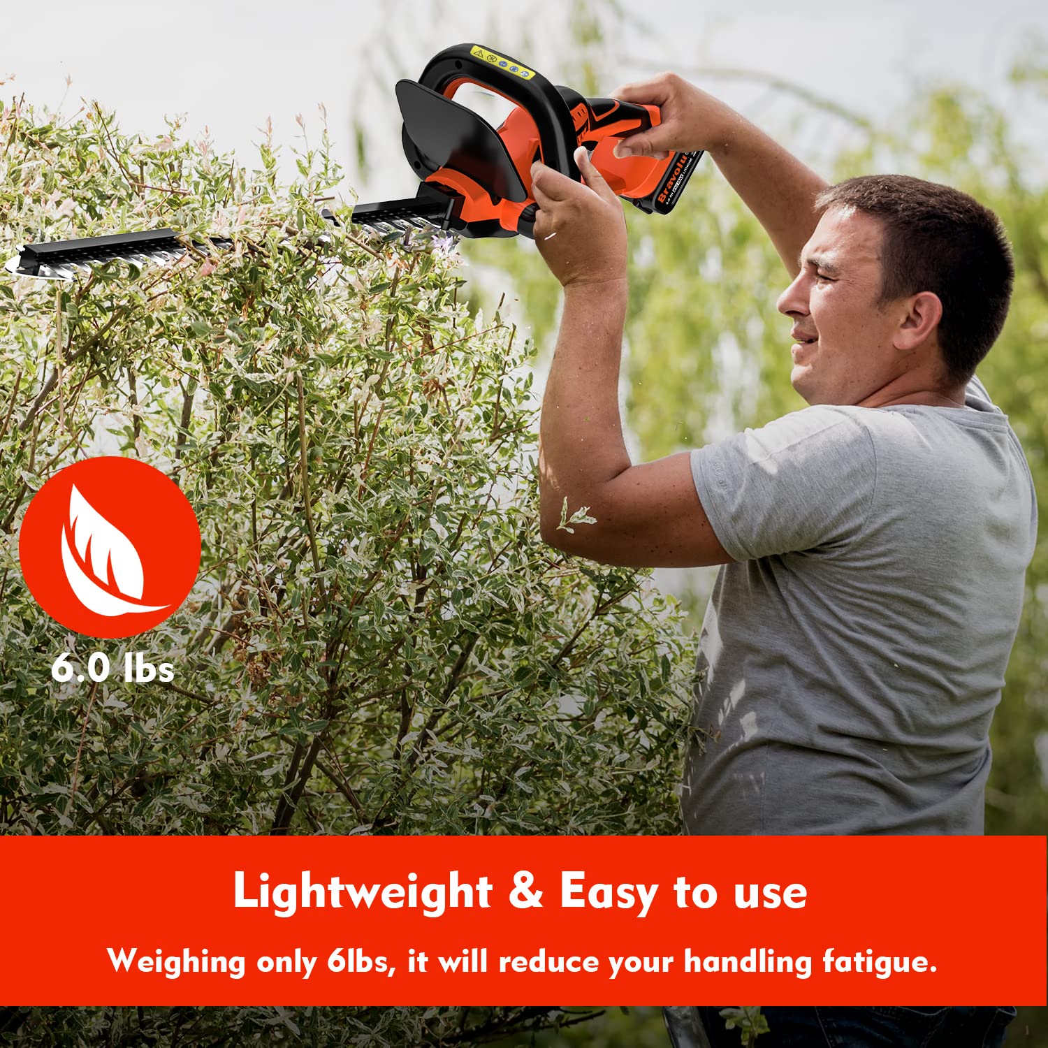 Bravolu 21V Cordless Hedge Trimmer, 20" Dual-Action Blade, Hedge Trimmer Cordless with 4.0Ah Battery and Fast Charger, 1400 RPM, Electric Hedge Trimmer for Shruber and Yard Hedge Cutting