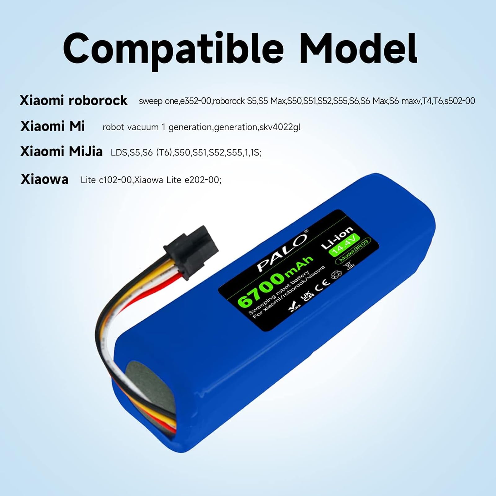 Brr2P4S5200S 6700Mah Battery For Xiaomi Mijia Xiaowa Roborock S50 S51 S52 S55 Mijia S5 S6 Pure T4 T6 1St And 2Nd Generation Robot Vacuum Cleaner