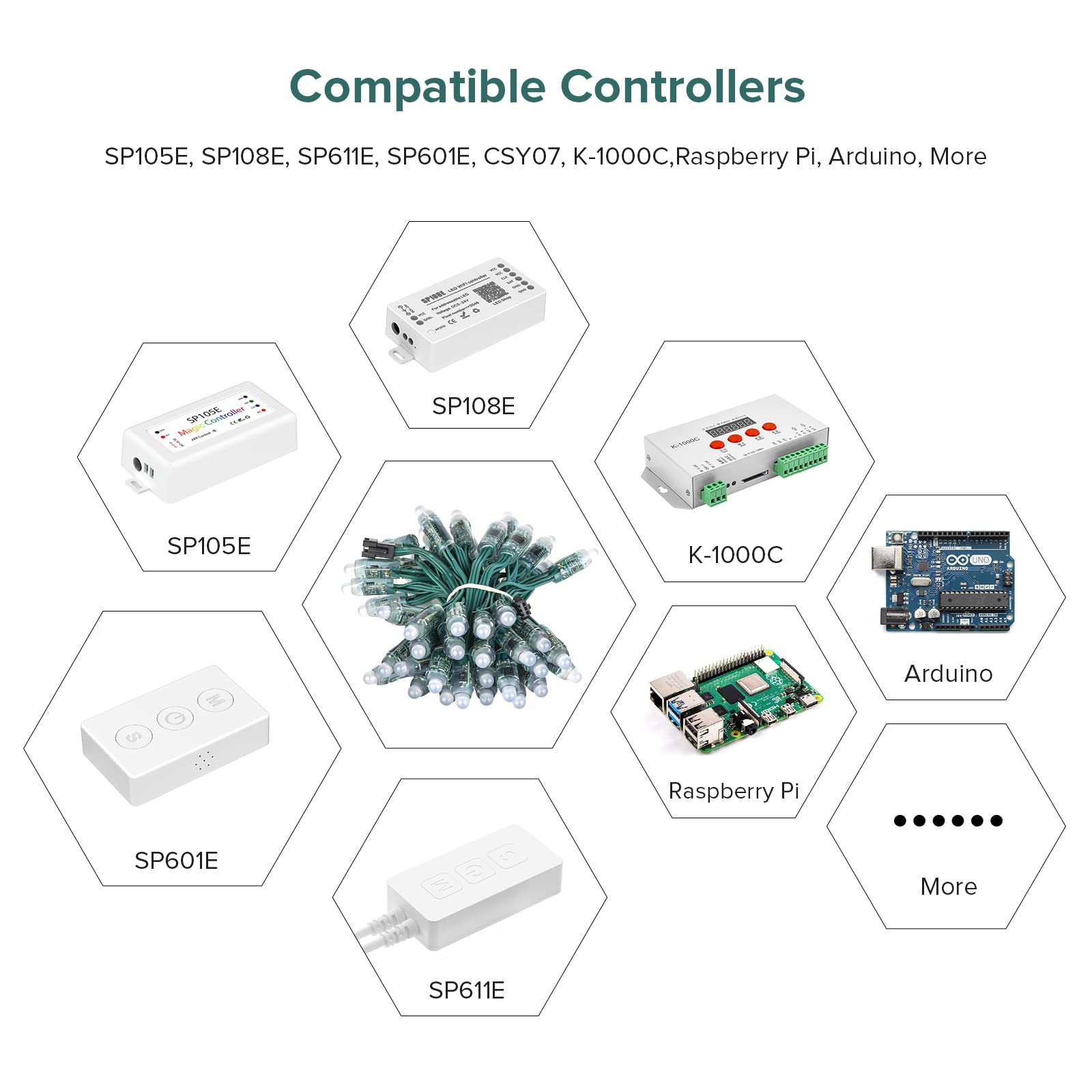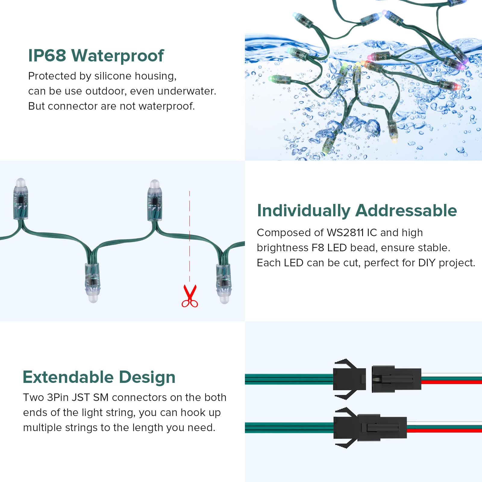 BTF-LIGHTING WS2811 Diffused Digital RGB LED Pixel String Light 12mm Individually Addressable Round LED Module 50pcs/String IP68 Waterproof DC12V