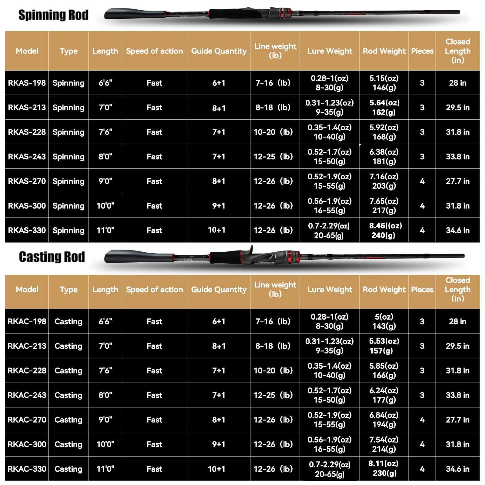 BUDEFO Travel Portable Baitcasting Fishing Rods Spinning and Casting Rod 24 Ton Carbon 6ft-11ft 3Pc and 4Pc Fishing Pole