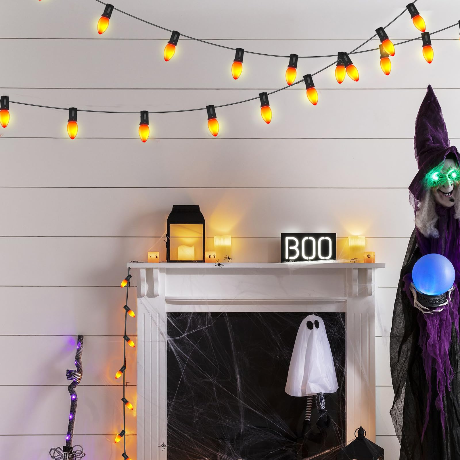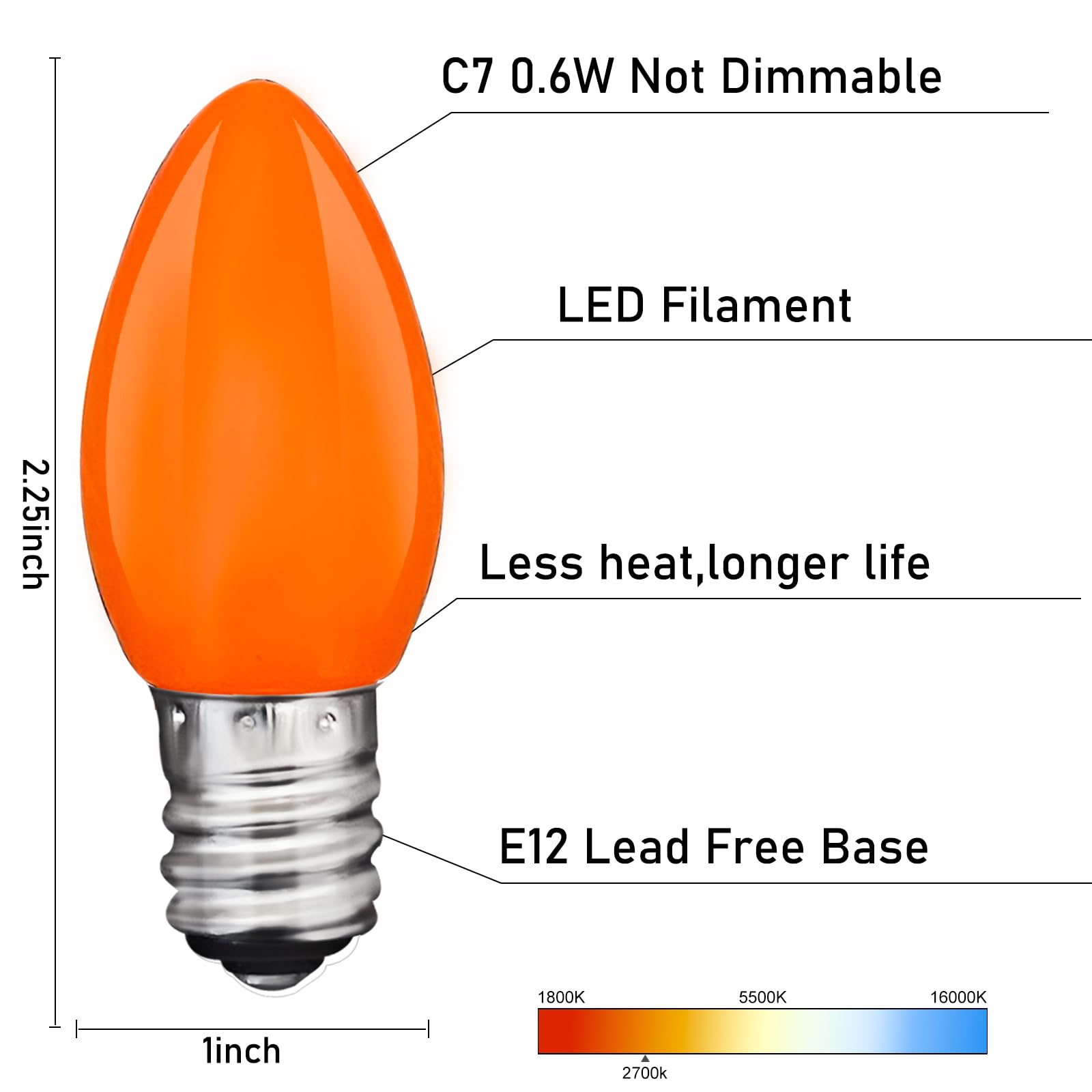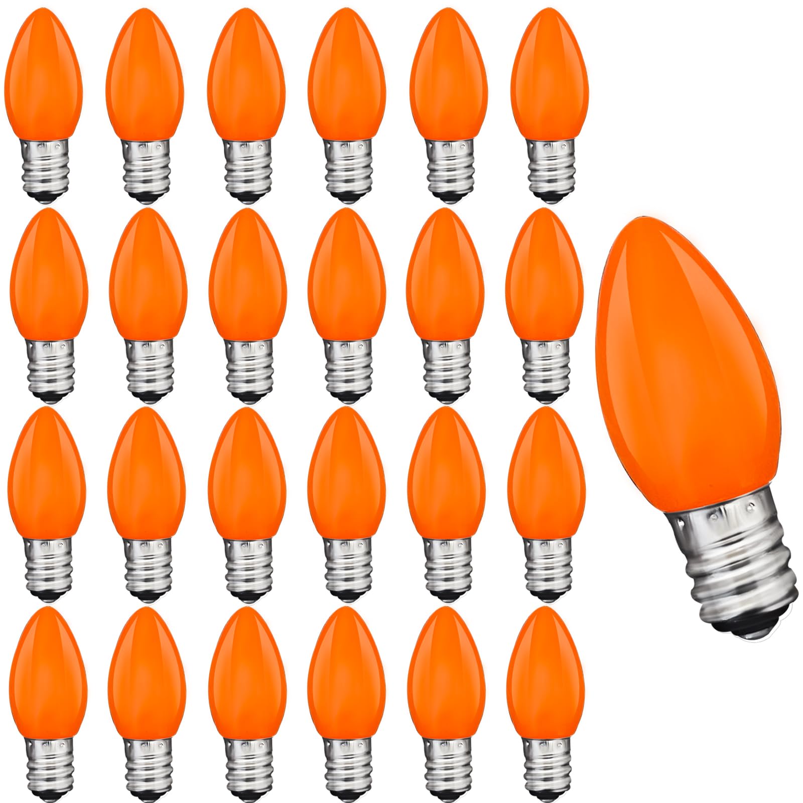 C7 25 Pack Orange LED Light Bulbs, Ceramic C7 Light Bulbs for Christmas Halloween Lighting, Outdoor C7 String Lights, C7/E12 Candelabra Base, 0.6 Watt