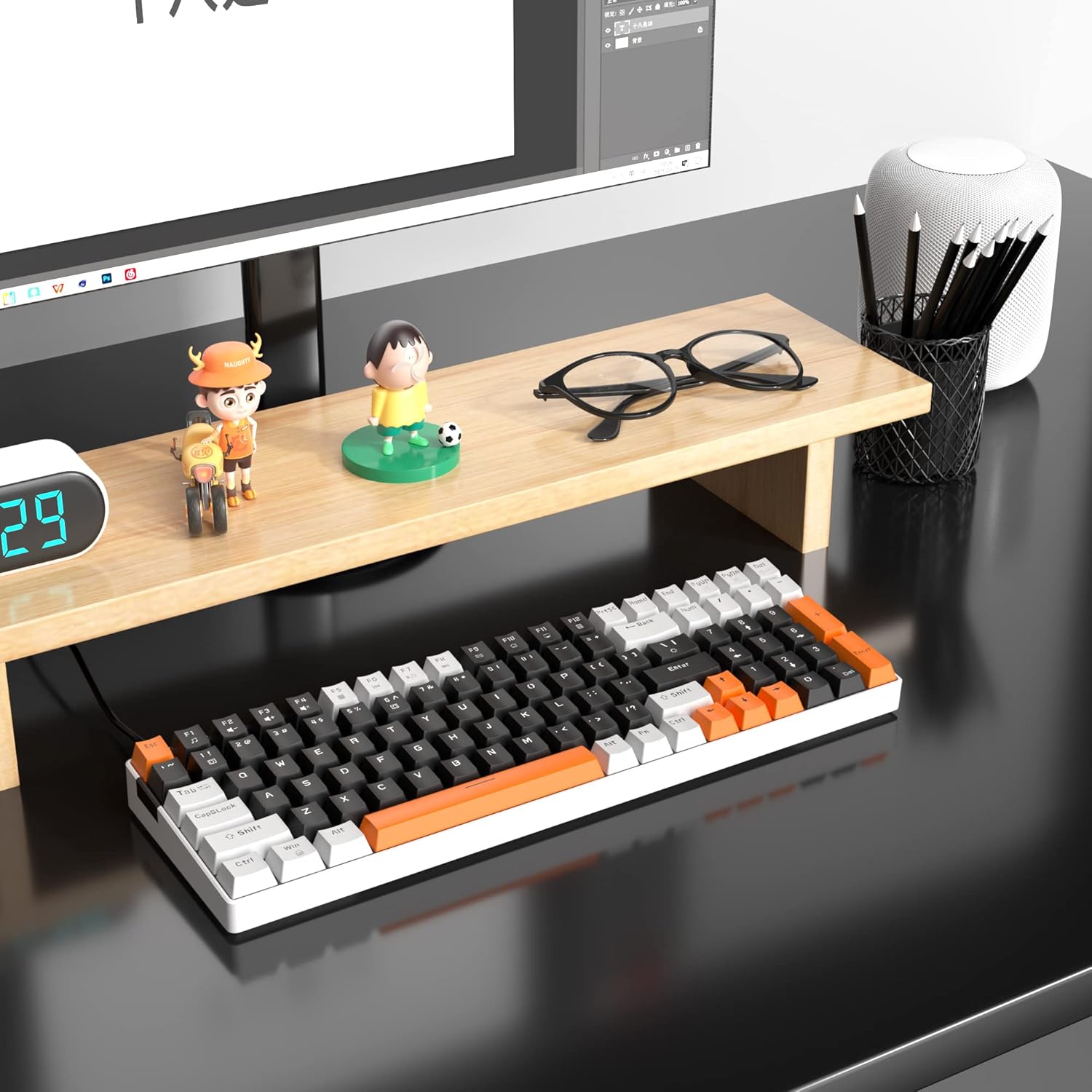 Camiysn Wired Mechanical Gaming Keyboard, 100 Keys Compact Gaming Keyboard with Number Pad LED Blue Backlit Yellow Switches Keyboard for PC Laptop, White