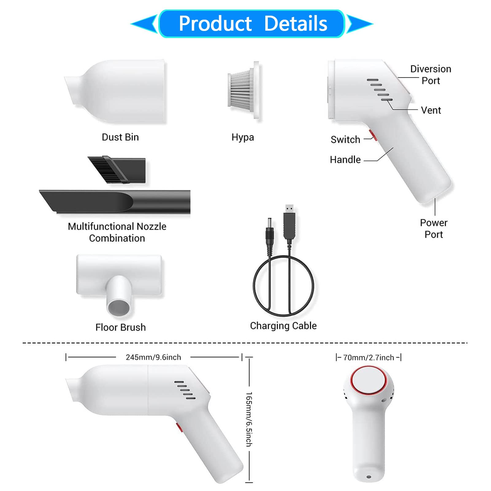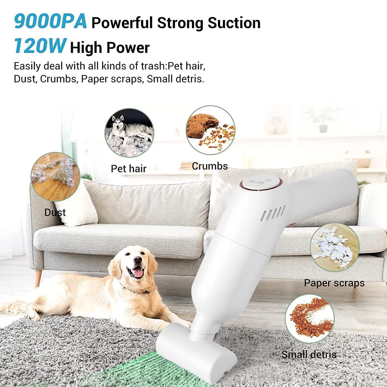 Car Vacuum Cordless Rechargeable, Portable Vacuum Cleaner For Car, Handheld Mini Vacuum With 9000Pa Powerful Suction For Home Office Pet