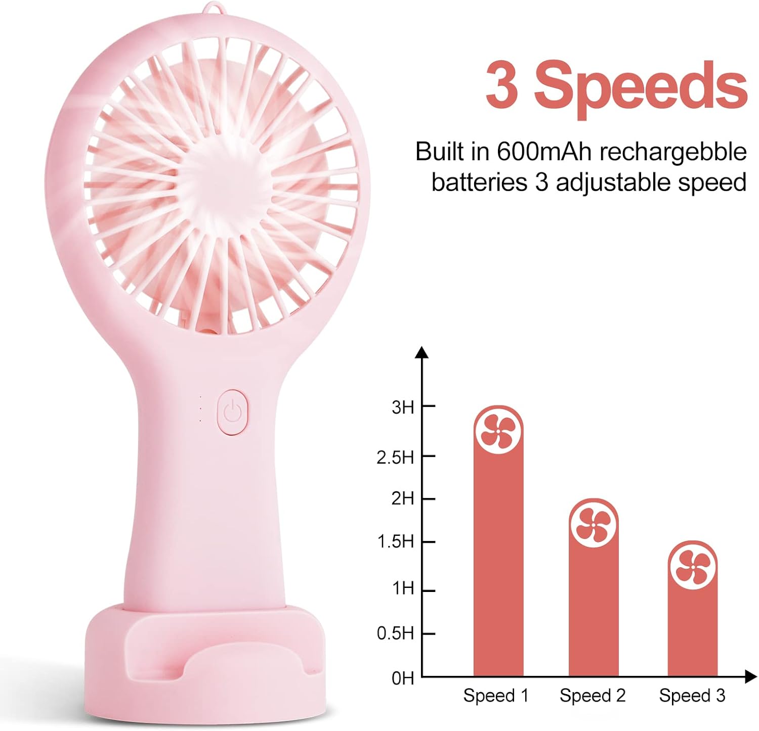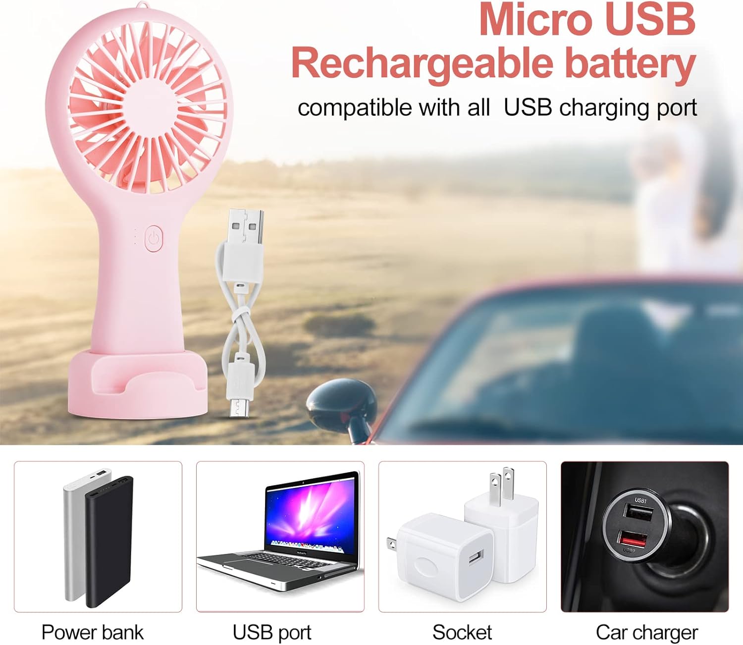 Chnlml Handheld Rechargeable Fan,Portable Mini Pocket Hand Fan Battery Powered With Base Eyelash Nail Art Make Up Fan For Girls