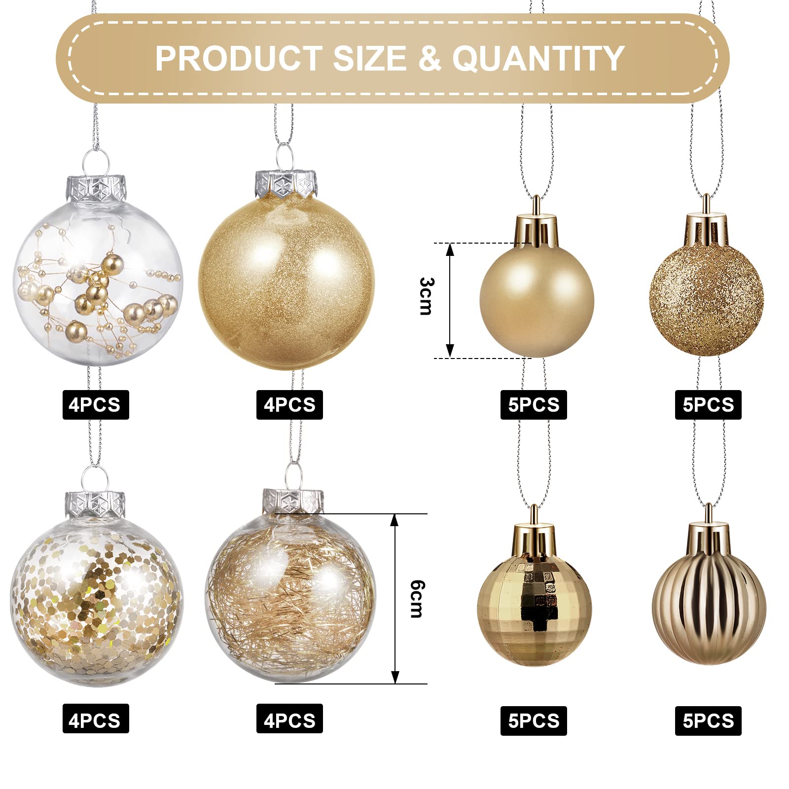 Christmas Balls Ornaments Set Star Balls Tree Baubles Set Plastic Tree Topper Star Clear Balls for Tree Birthday Holiday Indoor Outdoor Decor (Champagne Gold,37 Pieces)