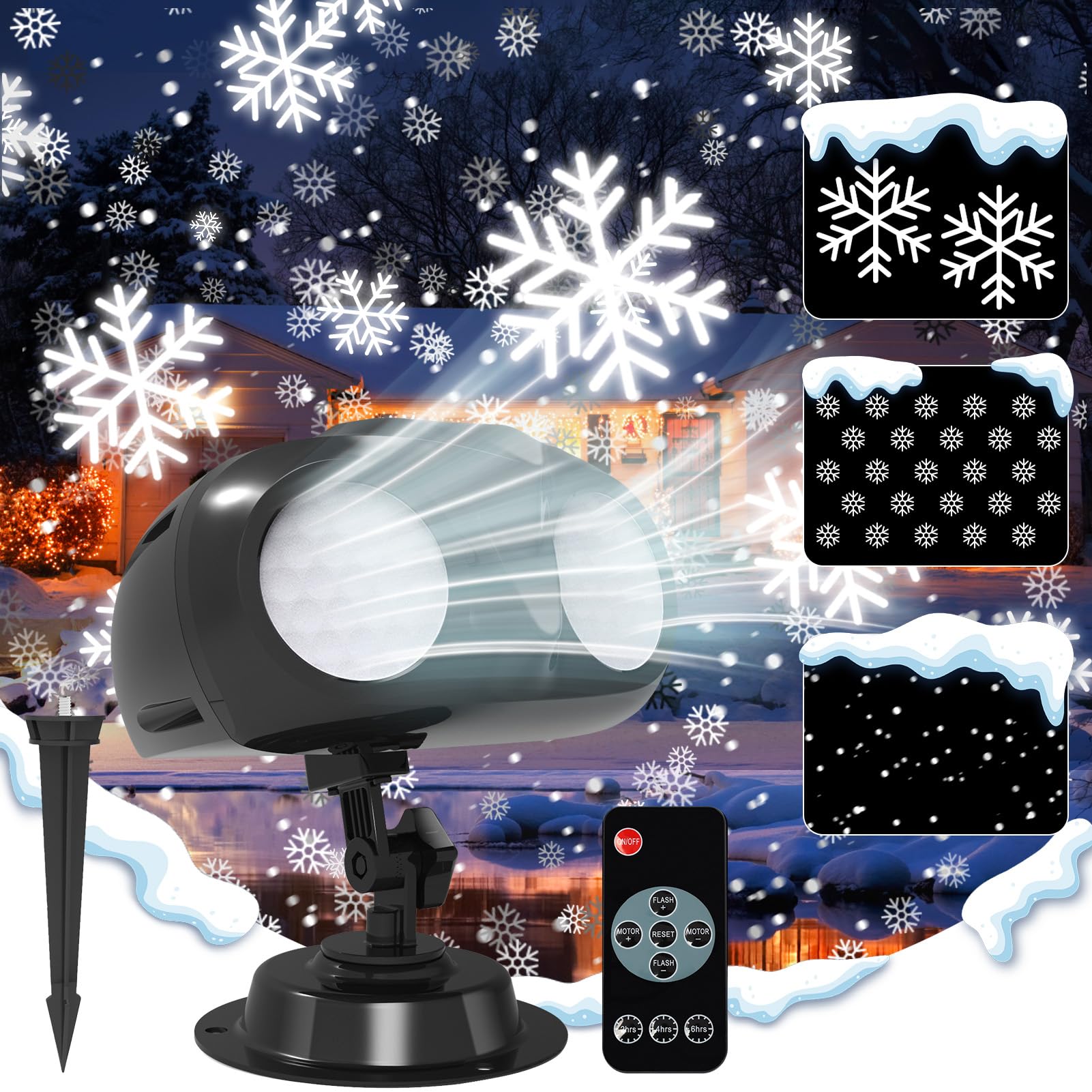 Christmas Snowflake Projector Lights Outdoor, d Owl Shape Snowfall Lights Projector with Remote, IP65 Waterproof Landscape Light for Xmas Holiday Wedding Indoor Garden Patio Party