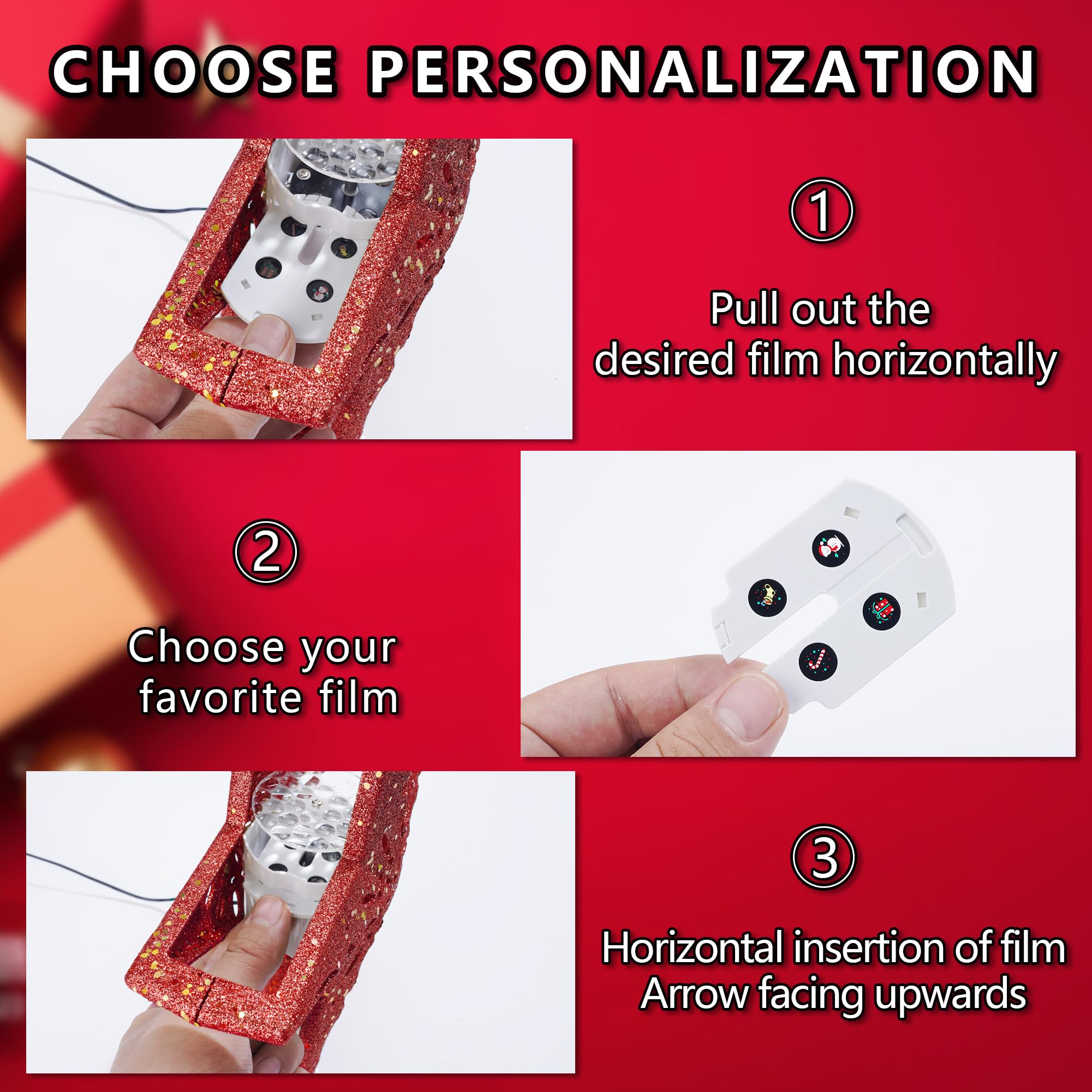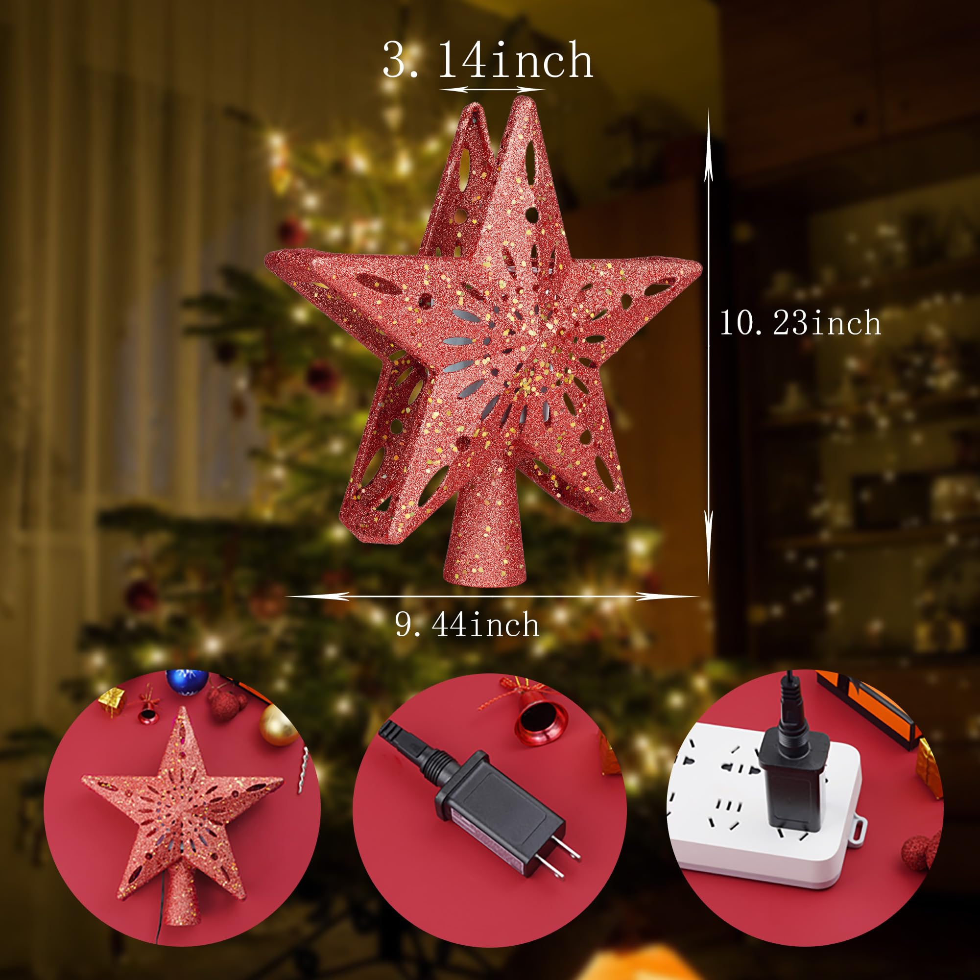 Christmas Star Tree Topper - Lighted with 6 Projection Modes Built-in Festive LED Rotating Lights Holiday Xmas Party Decoration for Christmas Trees(Red)