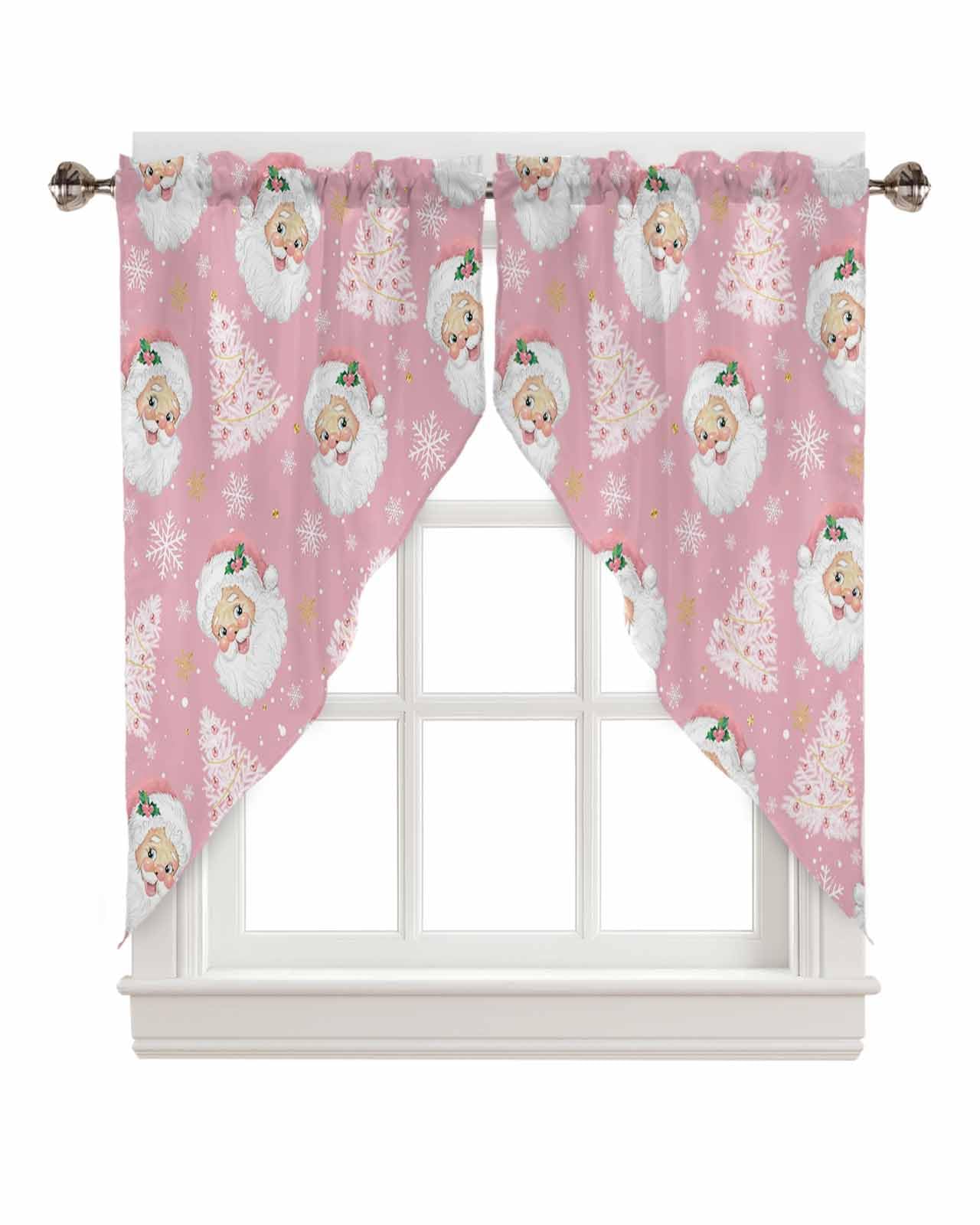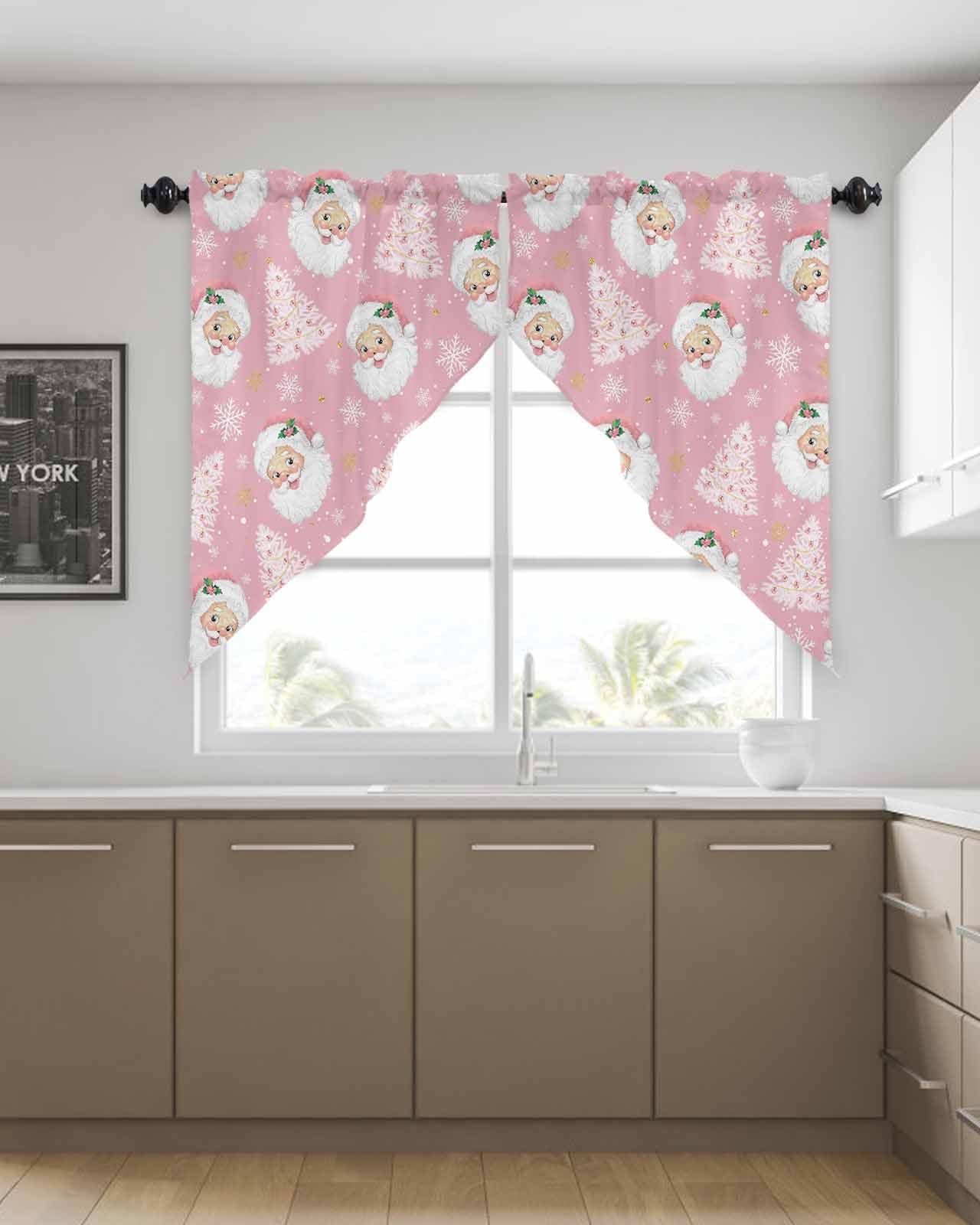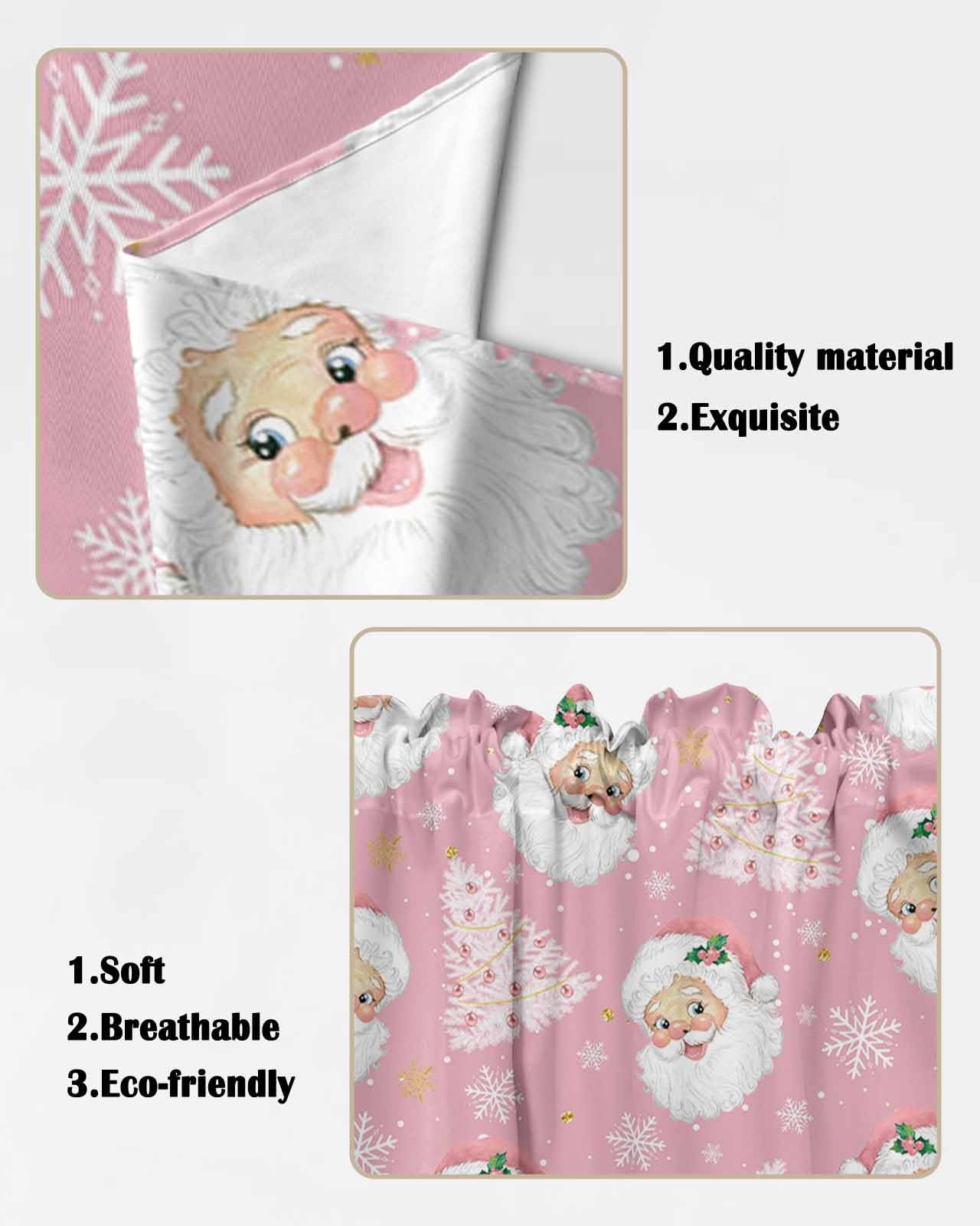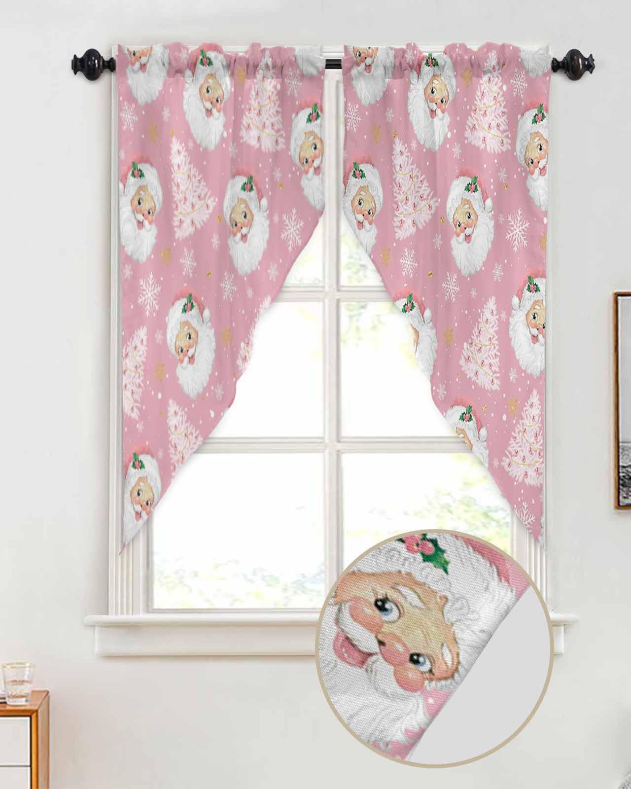 Swag Valances for Windows Material: This swag curtain is made of polyester material, which is soft and skin-friendly, ensuring a comfortable and durable experience for you and your family. The edge of kitchen curtains is perfect, not easy to deform, exquisite and durable, Valances for windows can be used all year round, especially at living room, study room, kitchen, bedroom, office, closet, bathroom. Pink Christmas Santa Claus Style. Size & Rod Pocket Design: The size of swag topper for windows is 36x36in2 (91x91cm2) 0.66lb, the kitchen curtain are designed with a rod pocket, the rod pocket size is 3in, easy to install and remove without any tools. Simply slide window valances onto rods less than 1.5 inches in diameter.