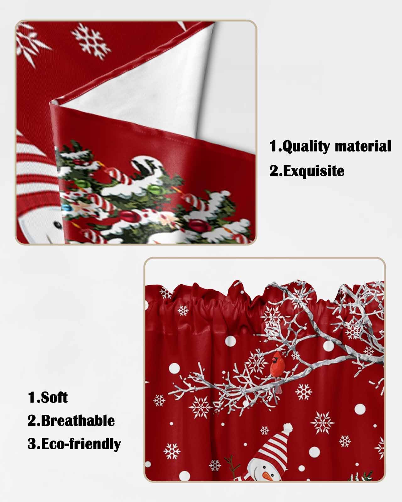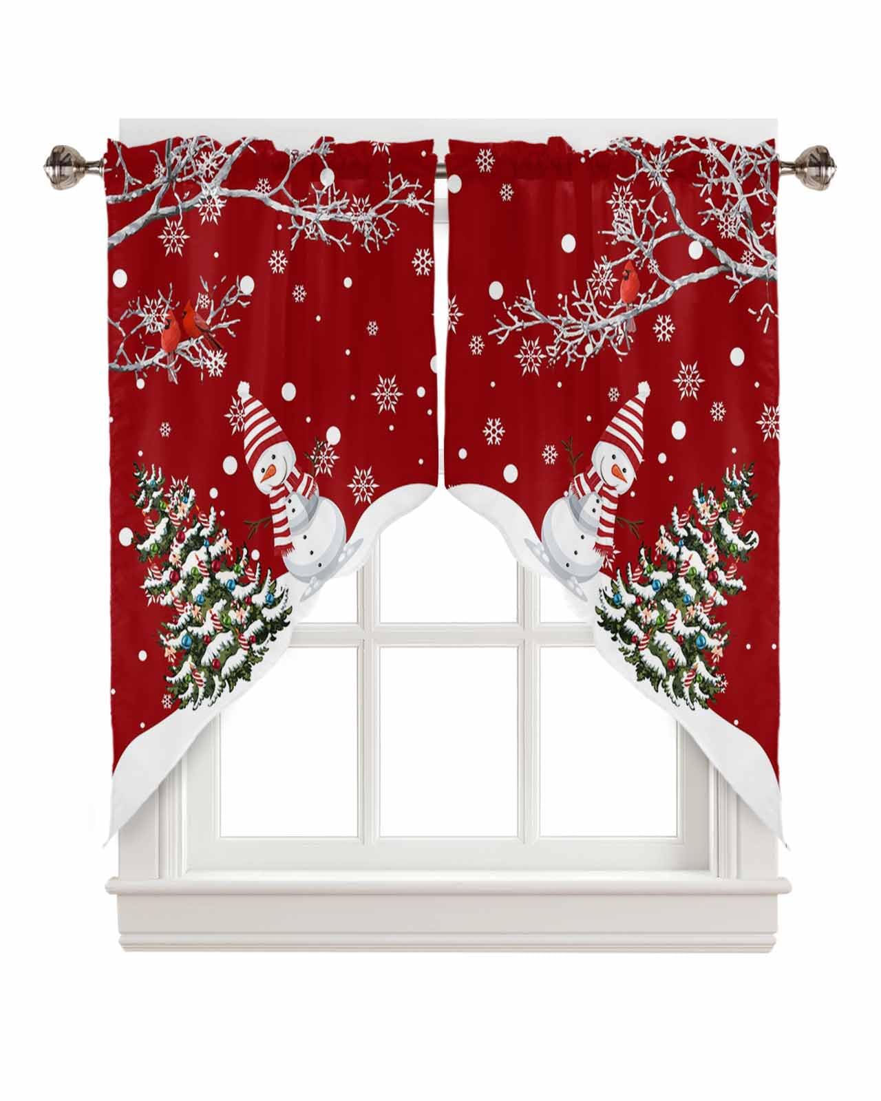 Christmas Swag Curtains Material: This kitchen Christmas swag curtains is made of polyester material, Christmas swag kitchen curtains is soft and skin-friendly, ensuring a comfortable and durable experience for you and your family. The edge of Christmas kitchen swag curtains is perfect, not easy to deform, exquisite and durable, Christmas kitchen curtains swags can be used all year round, especially at living room, study room, kitchen, bedroom, office, closet, bathroom. Size & Rod Pocket Design: The size of Christmas swag valances for kitchen windows is 36x36in2 (91x91cm2) 0.66lb, Christmas kitchen curtains swag are designed with a rod pocket, the rod pocket size is 3in, easy to install and remove without any tools. Simply slide window valances onto rods less than 1.5 inches in diameter.