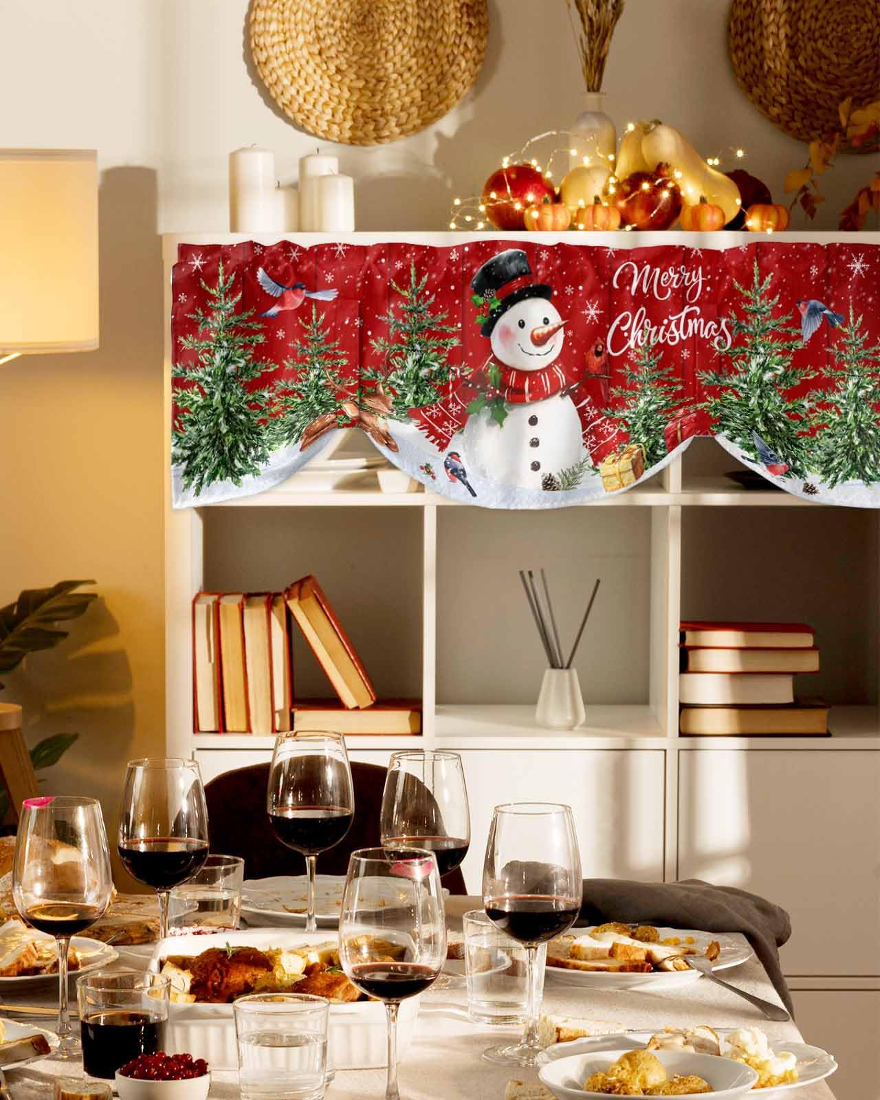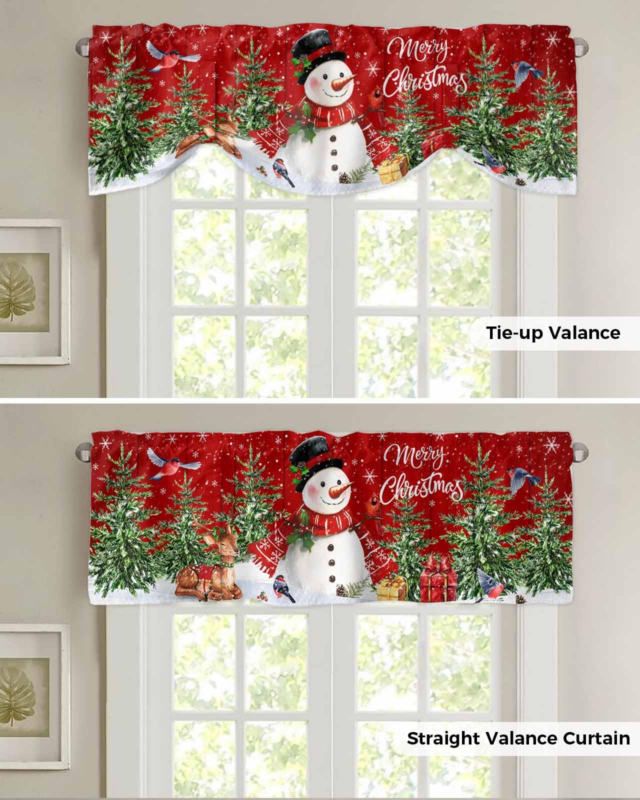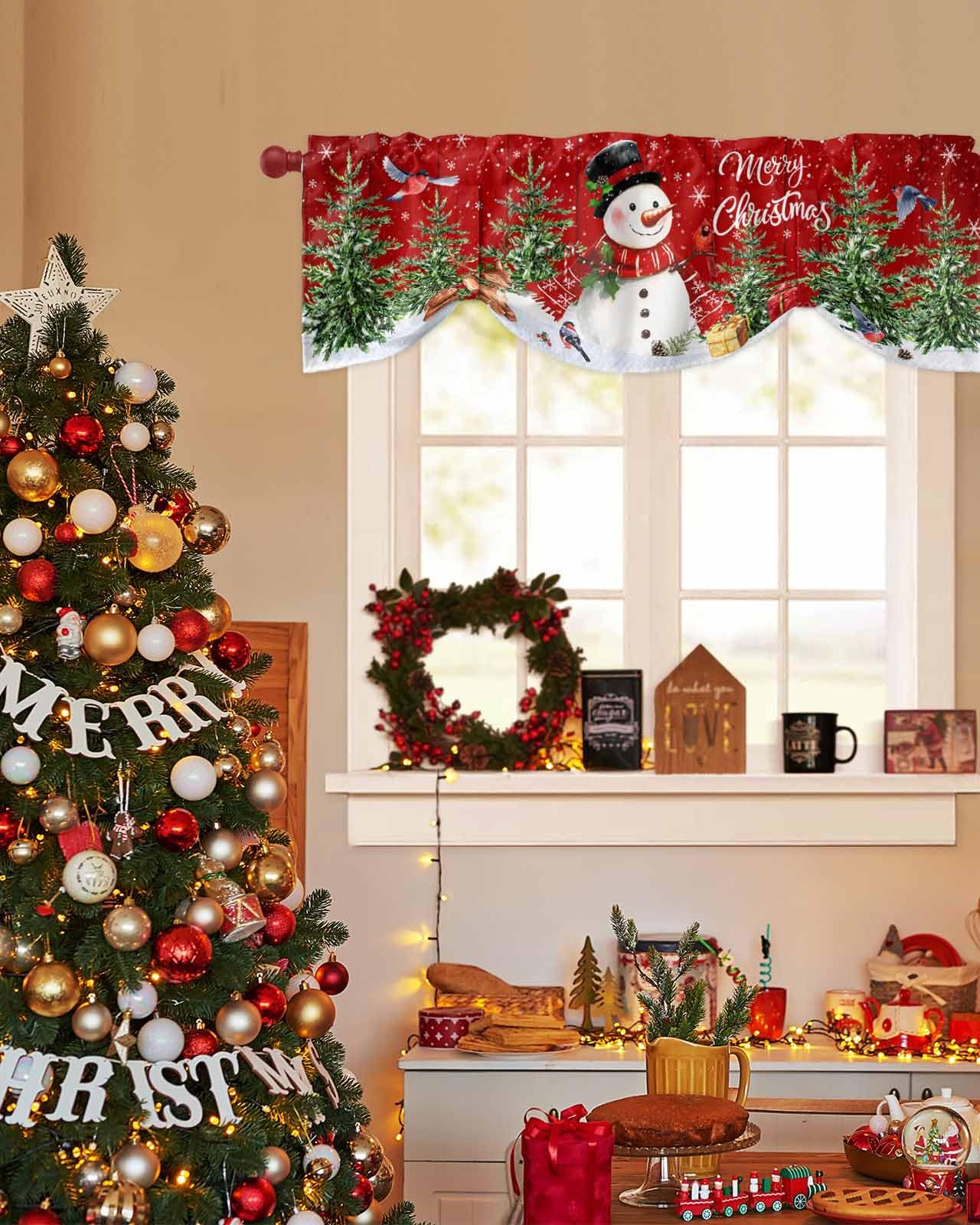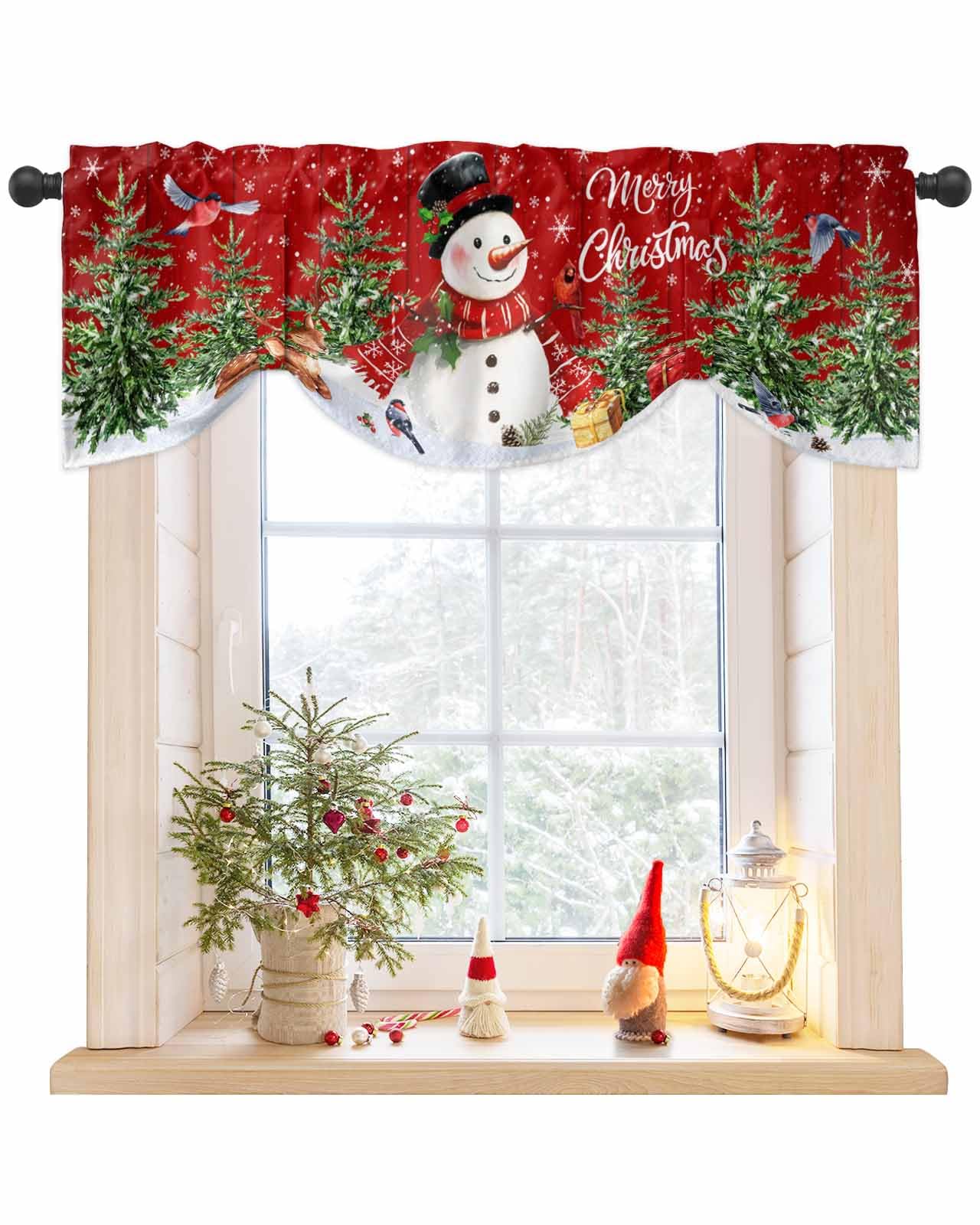 Christmas Tie Up Curtains Valances for Windows, Cute Snowman Xmas Tree Rod Pocket Blackout Balloon Curtain, Rustic Farmhouse Valance Curtains Topper Decor for Bedroom, Cafe - Red 54"x18"