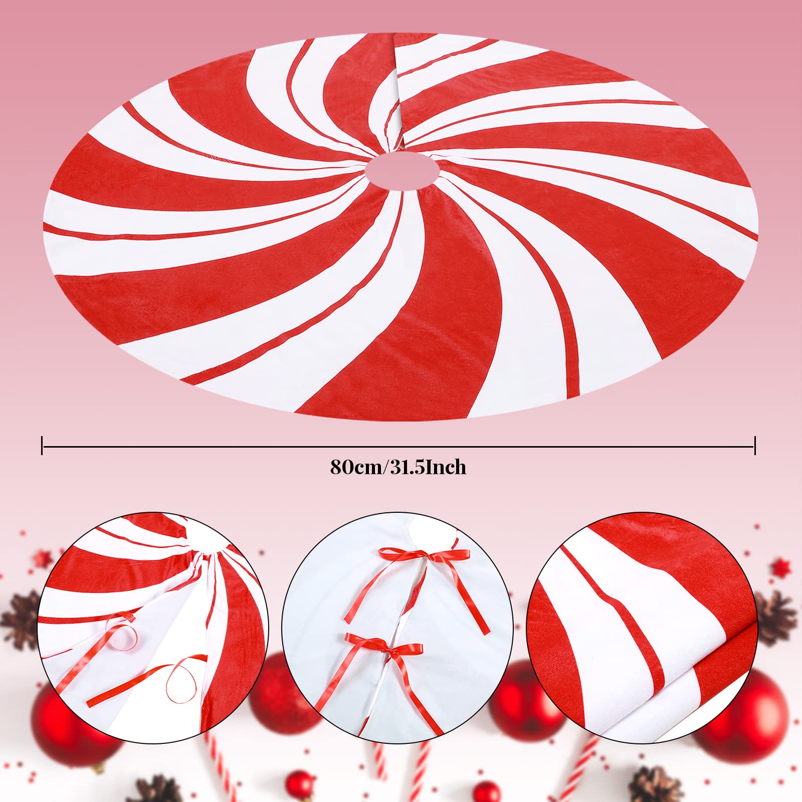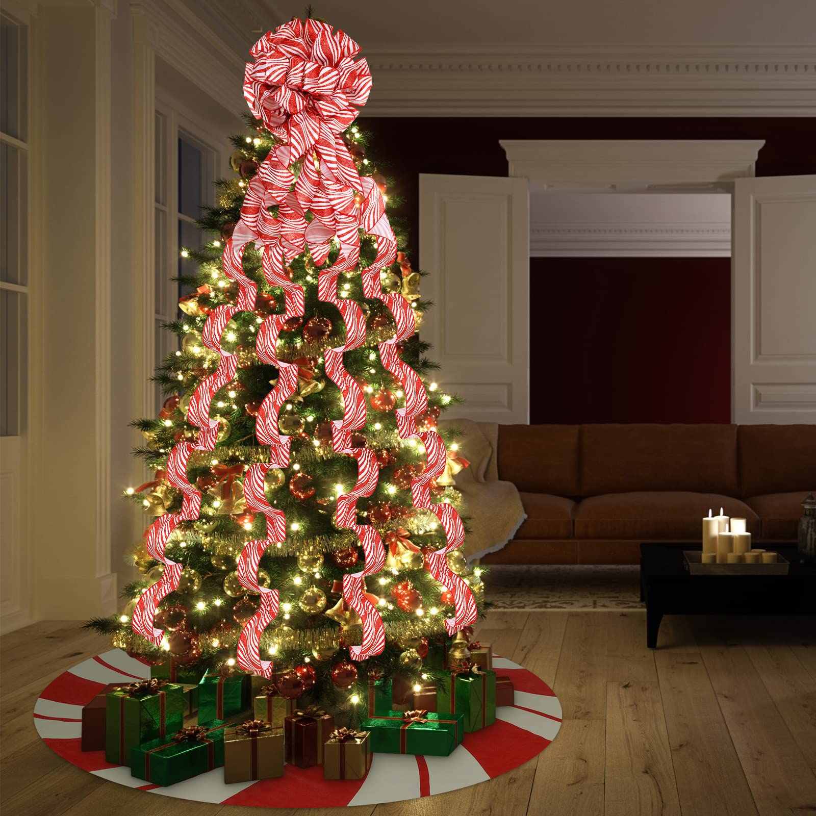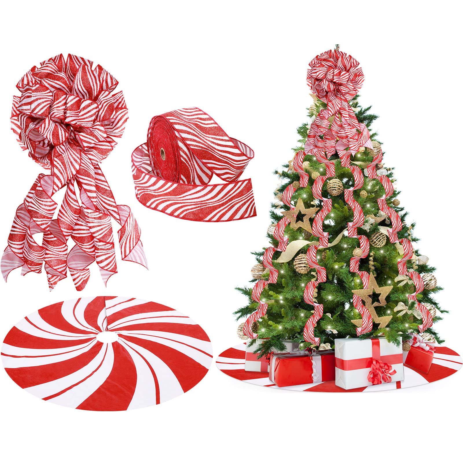 Christmas Tree Decoration set Include Christmas Tree Topper Bow, Decorative Strips Ribbon, Christmas Tree Skirt with Annual Ring for Farmhouse, Wreath Crafts Decorations(Candy Style, 40 Inch)