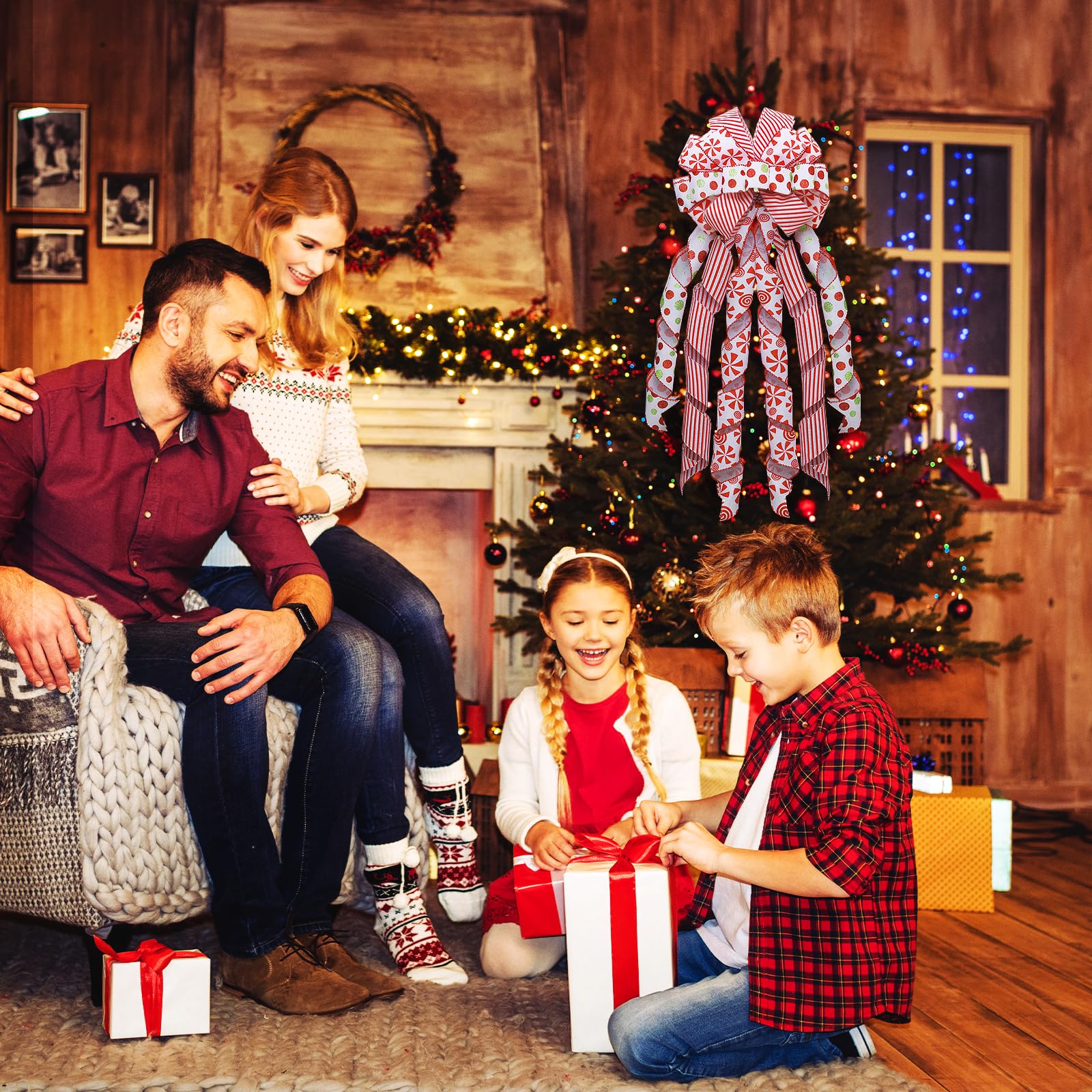 Christmas Tree Topper Wreath Bow Large Red Green Glitter Dot Bow Red White Stripe Ribbons Ornaments for Xmas Garland Wedding Home Holiday Party Thanksgiving Indoor Outdoor Decor 46"x13"
