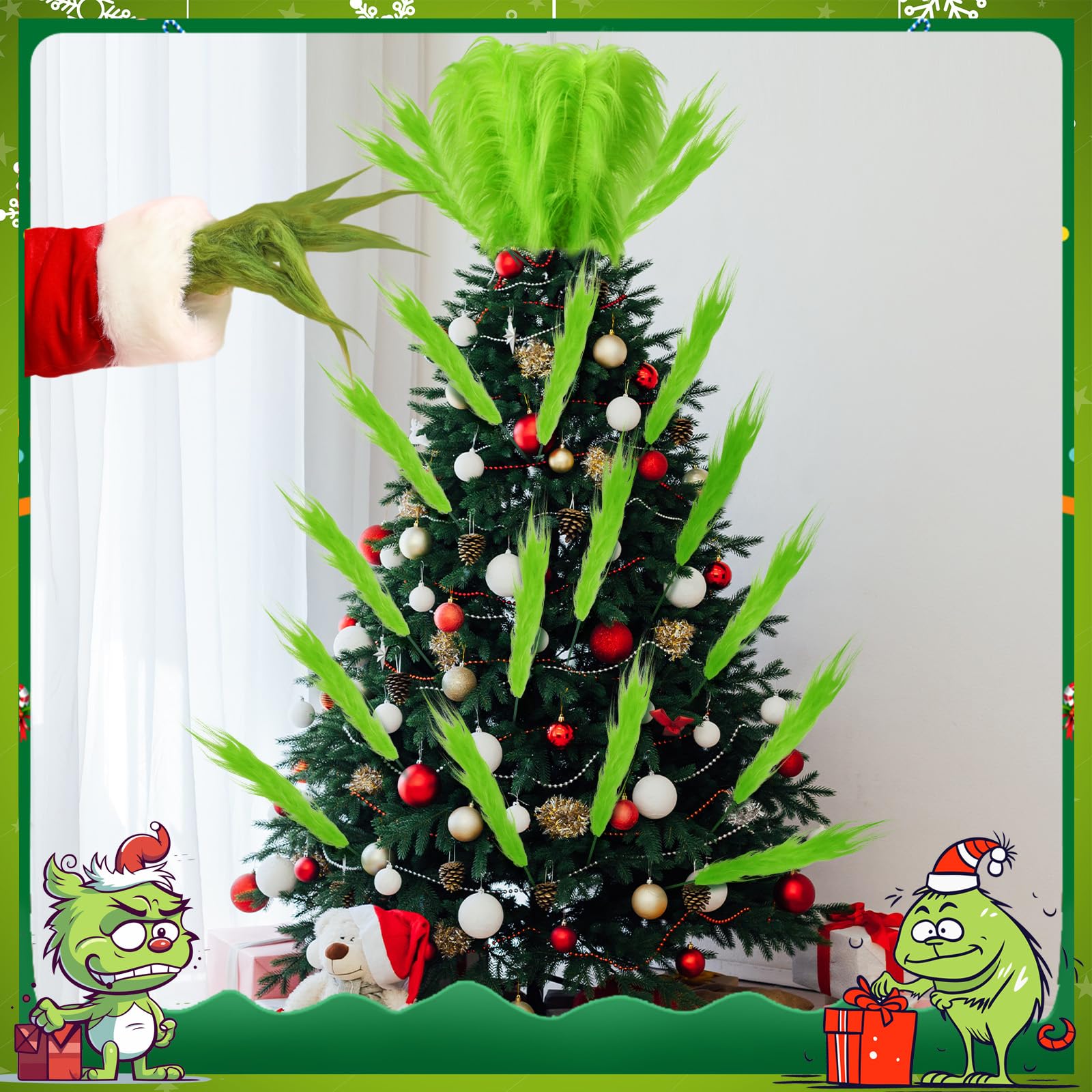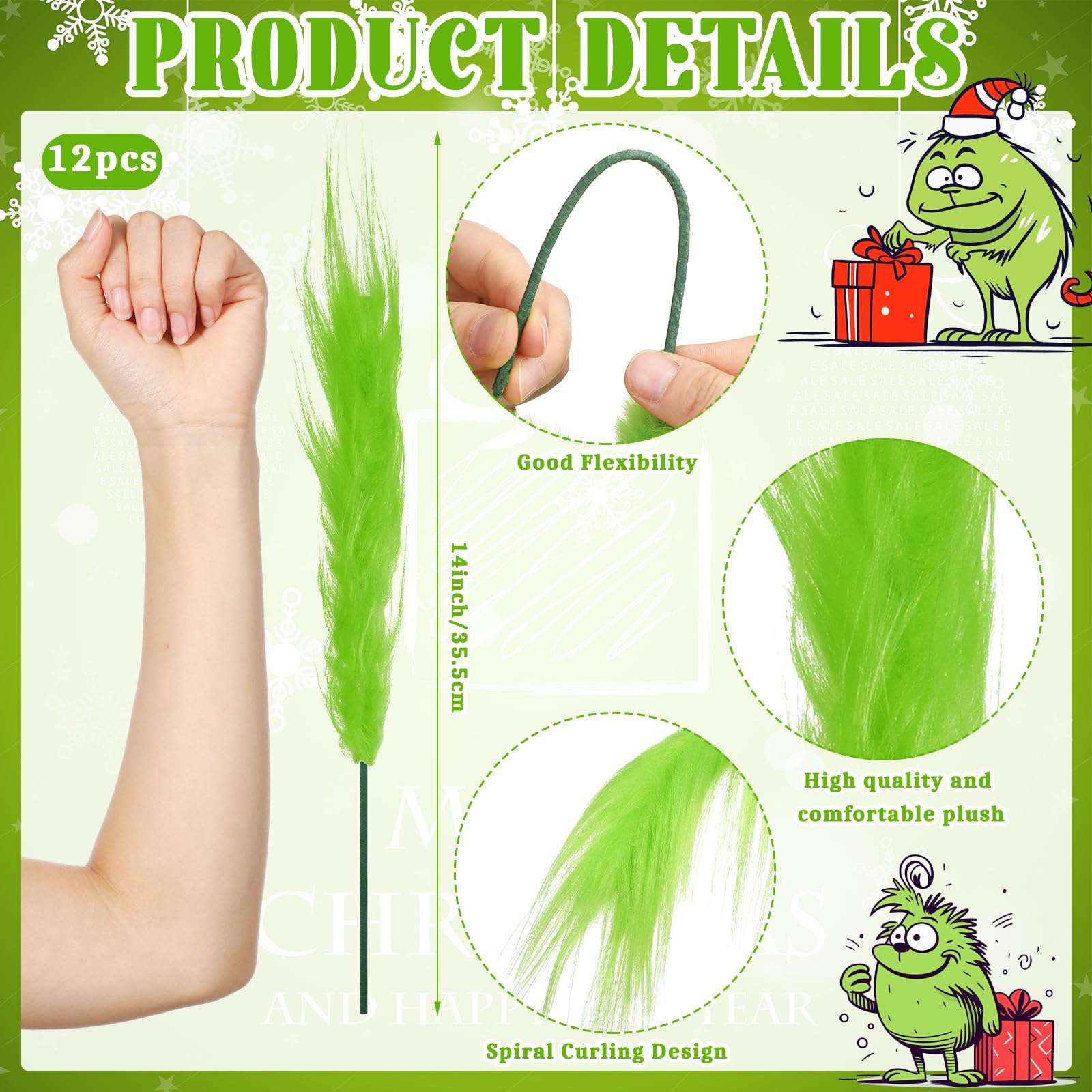 Civaner 12 Pcs Green Christmas Tree Topper 14'' Green Furry Stems Lime Green Curly Picks Stems Christmas Ornaments Picks for Xmas Tree Topper Home Vase Fillers Decorations