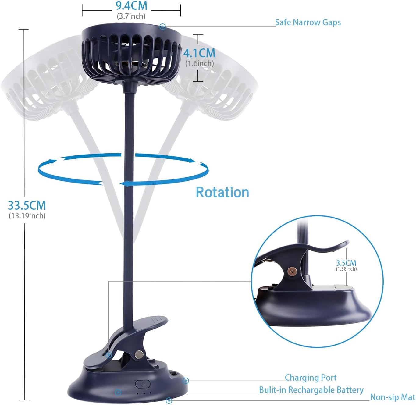 Clip On Small Mini Fan, Portable Usb Battery Operated Rechargeable Quiet Personal Desk/ Baby Stroller Fan 3 Speeds Flexible Neck