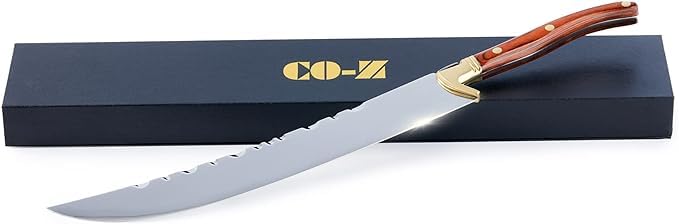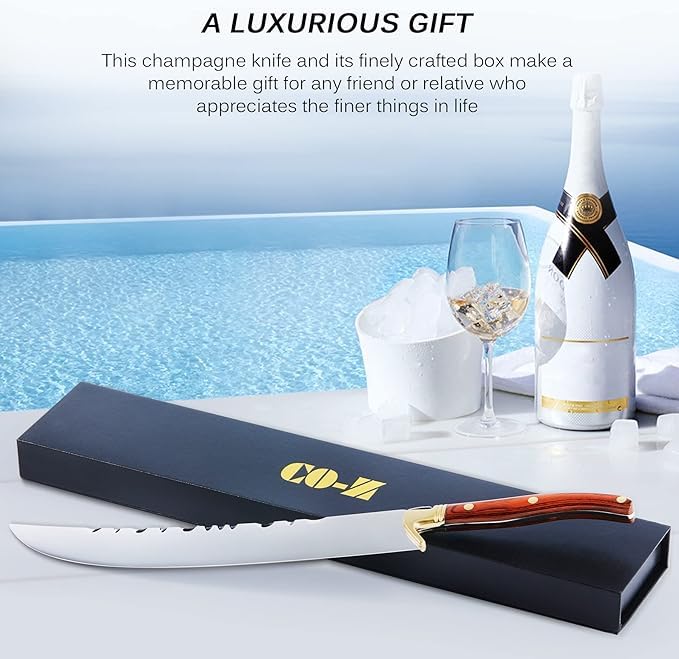 CO-Z Champagne Saber with Box Champagne Knife Wine Opener with Wooden Handle and Gold Accents Stainless Steel Bottle Opener 16.5" Champagne Sword for Wedding Gift Birthday Housewarming Home Bar