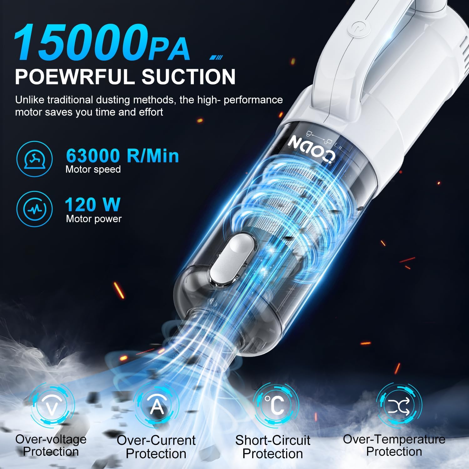 Codn Handheld Car Vacuum Cleaner, 2 In 1 Cordless Vacuum Cleaner & Air Duster, 15000Pa High Power Suction Portable Rechargeable Vacuum With Multinozzles For Car, Home, Office, Pet