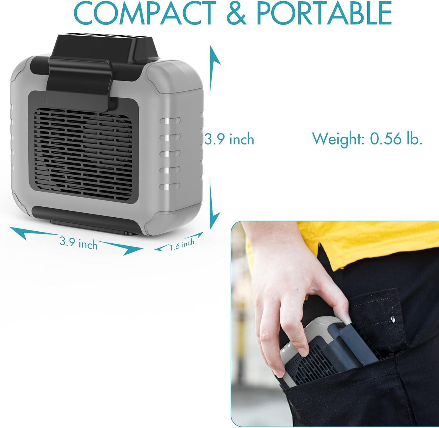 Featuring multiple mounting, the hanging waist fan is specially designed for workers, operators, and people who love outdoor activities. 6000mAh rechargeable battery will offer long battery life that could last for outdoor tasks. With a USB output port, it can even be used as a power bank to provide emergency power source for your electronic devices in the open air. Weighs only 0.56 lb., it is compact and portable to carry around. Say goodbye to sticky Tshirt and uncomfortable hot flashesSpecifications:Battery Capacity: 6000mAhCharging Time: About 4 hoursWorking Duration: 824 hoursHousing Material: ABS + SiliconeProduct Size: 3.91.63.9 inch 1004098 mmNet Weight: 0.56 lb. 256gTypeC Input: 5V/2.0A max.USB Output: 5V/2.1A max.Package Content:Waist Fan1, USBC Charging Cord1, Belt1, Lanyard1, User Manual1
