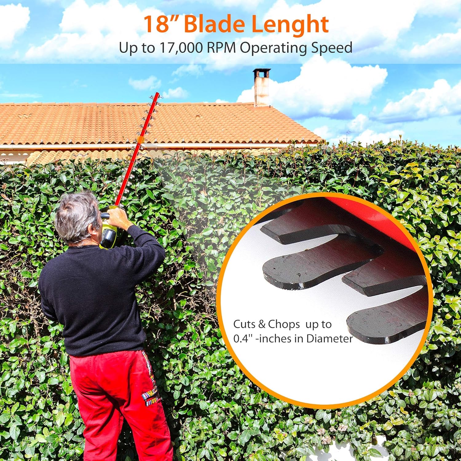 • 18” blade length: the serene Life electric hedge trimmer features 18 inch cutting blade length that cuts and chops branches up to 0. 4” in diameter. It introduces up to 17, 000 RPM operating speed. Excellent for gardening and landscaping
