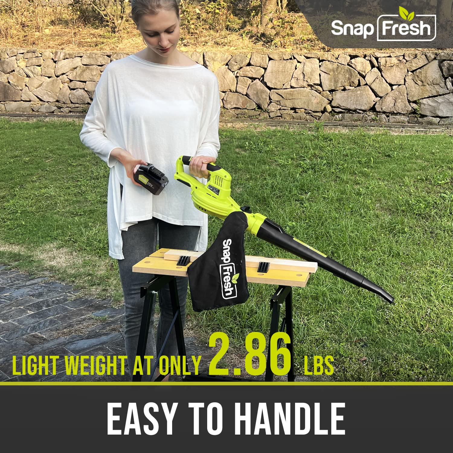 Cordless Blower & Vacuum - SnapFresh 2 in 1 Electric Blower with 4.0Ah Lithium Battery & 2h Fast Charger, 20V Handheld Vacuum Sweeper with Bag for Small Trash, Car, Dust, Pet Hair, Corner Cleaning