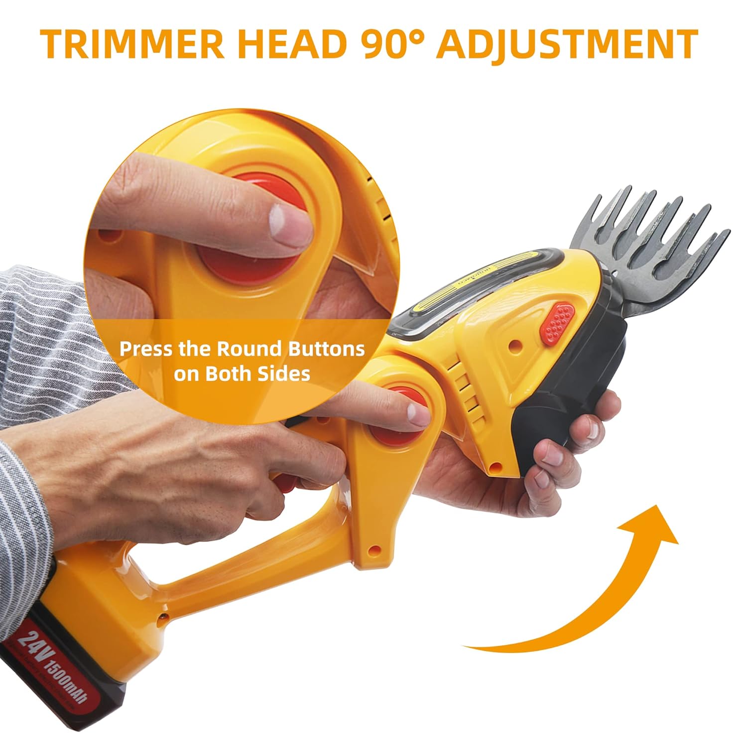 Cordless Grass Shear & Shrubbery Trimmer, Huhomco Portable 2-in-1 Hedge Trimmer 24-V Electric Grass Clippers with Curved Blade Garden Pruning Shears,Charger,2pcs Rechargeable Battery