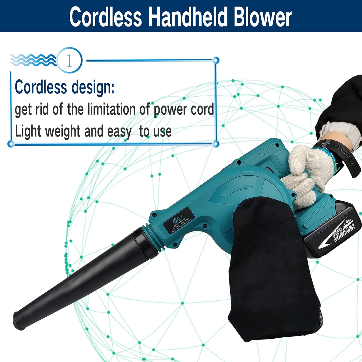 Cordless Leaf Blower-2 Packs 6.0Ah BL1860B Battery and DC18RC Charger Compatible with Makita 18V Cordless Leaf for Dust,Snow Debris,Yard,Hard to Clean Corner
