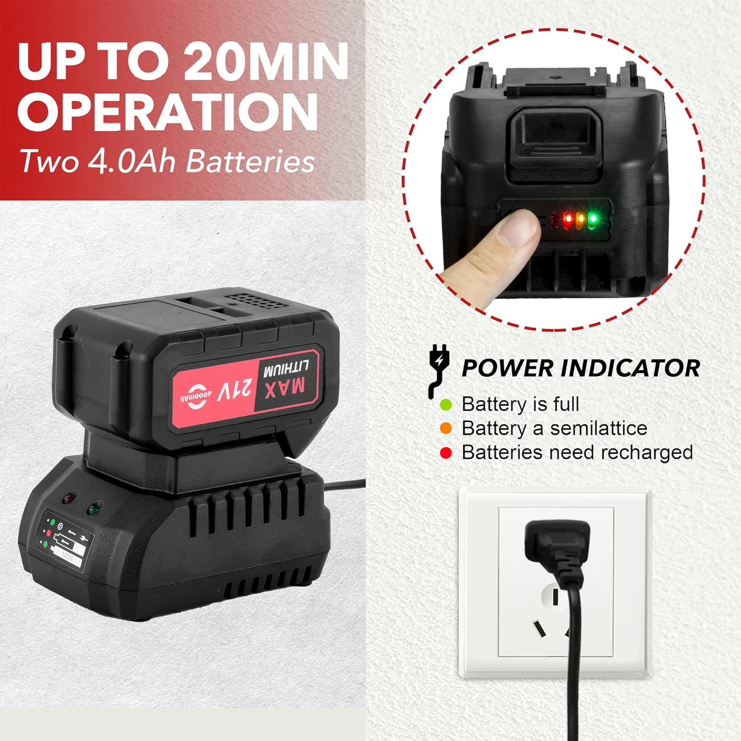Cordless Leaf Blower 6-Speed 400CFM with Battery Electric Handheld Leaf Blower for Lawn Care Sweeping Snow and Surface Dust Cleaning (Two Batteries)