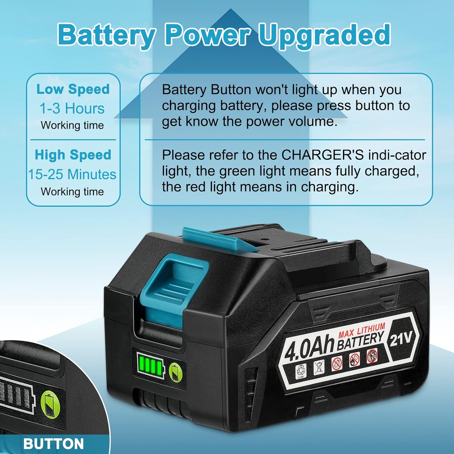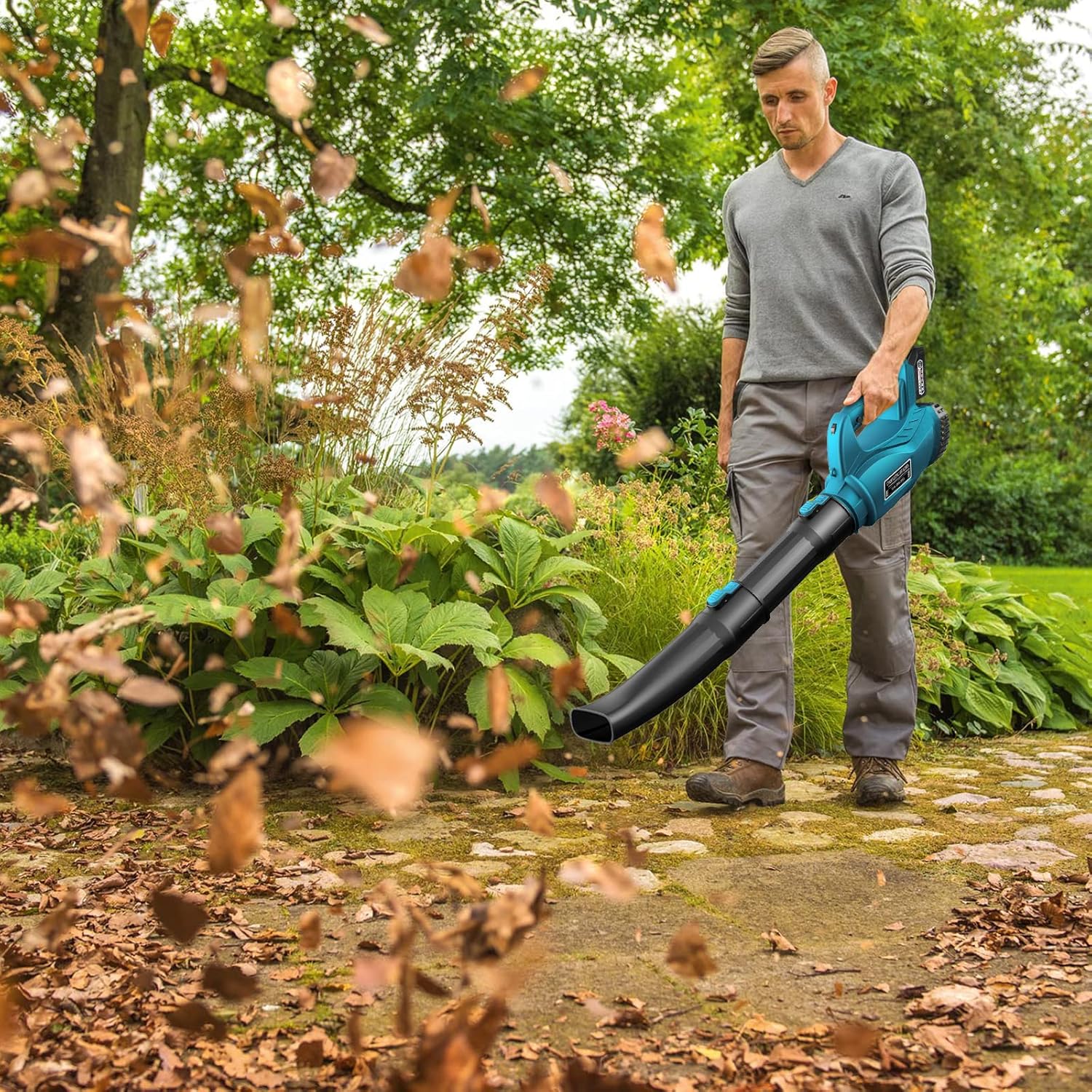 Cordless Leaf Blower - Aekegrep 320 CFM 150 MPH Battery Leaf Blower with 21V/4.0Ah Battery & Charger Powered Electric Leaf Blower,2 Section Tubes,6-Speed Dial,for Lawn Care and Yard Cleaning.