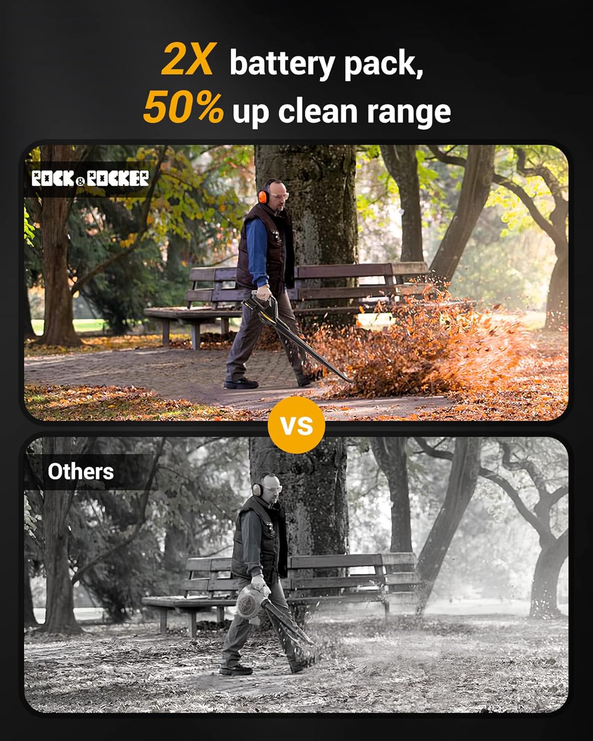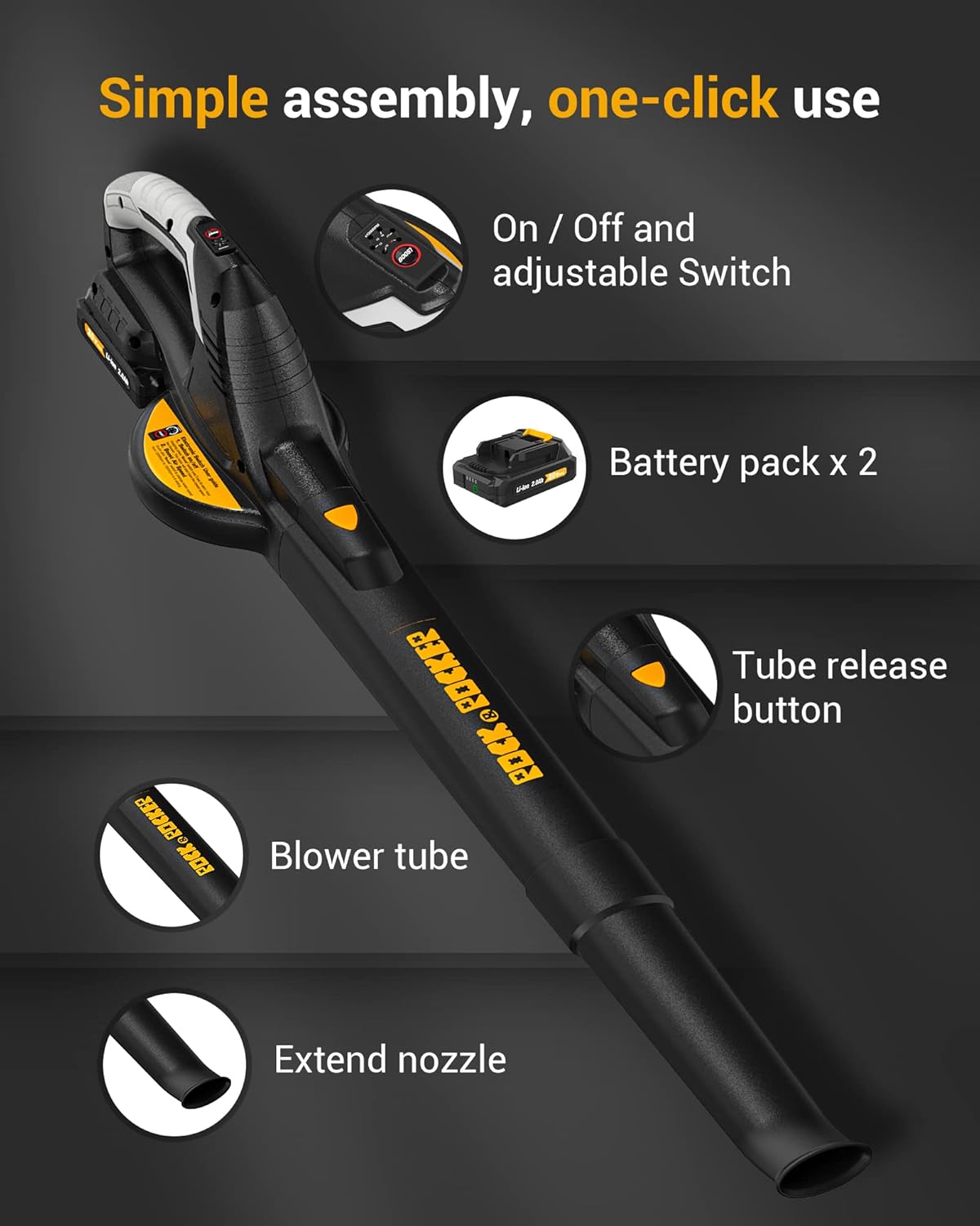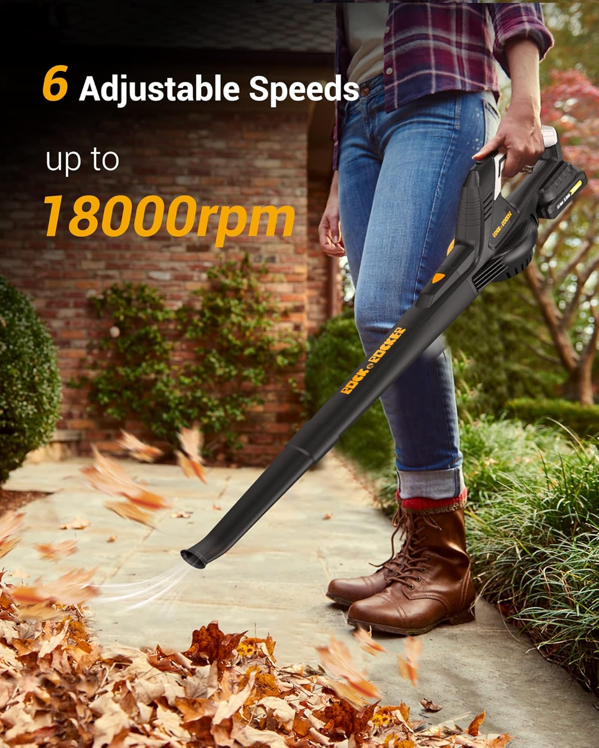 Cordless Leaf Blower with 2 X 20V Battery and Charger, Rock&Rocker Electric Leaf Blower 120MPH/170CFM 6 Adjustable Speeds and 2 Adjustable Tubes for Lawn Care/Yard/Jobsite/Patio