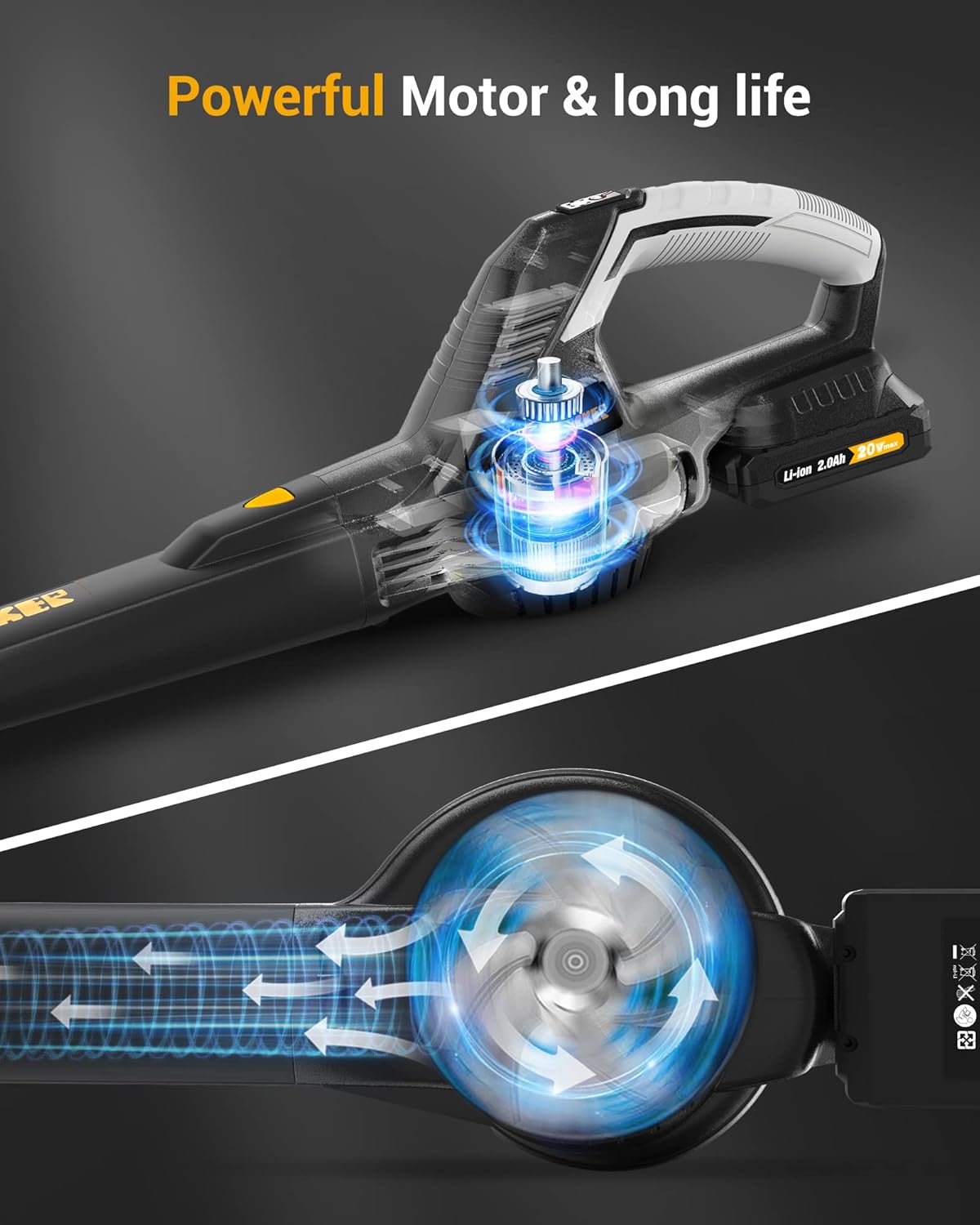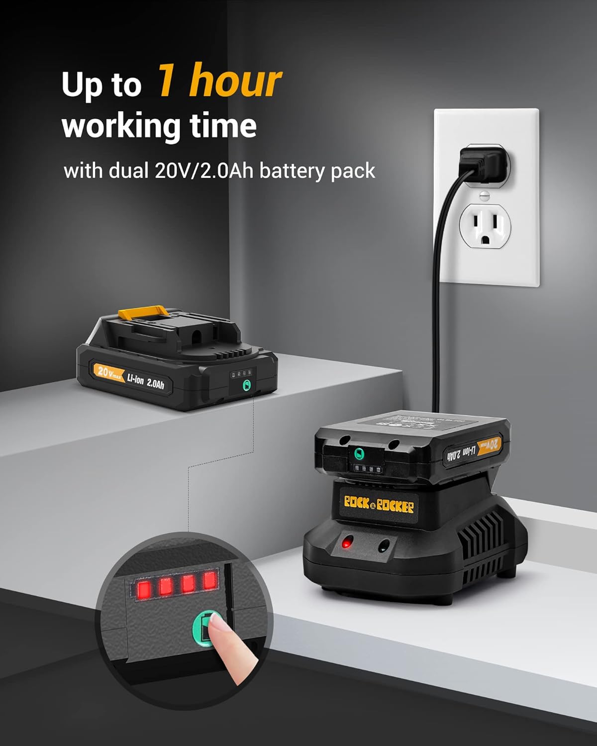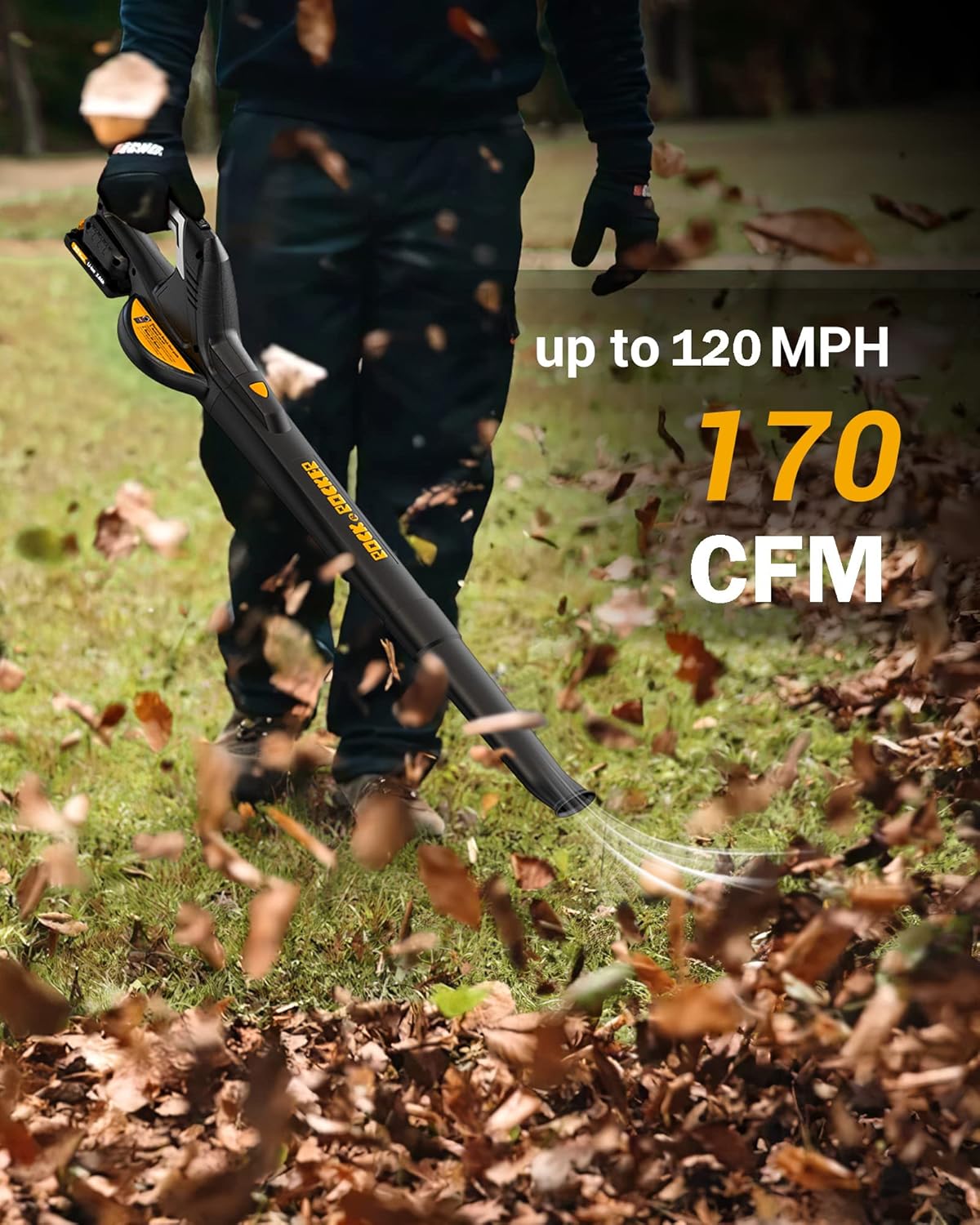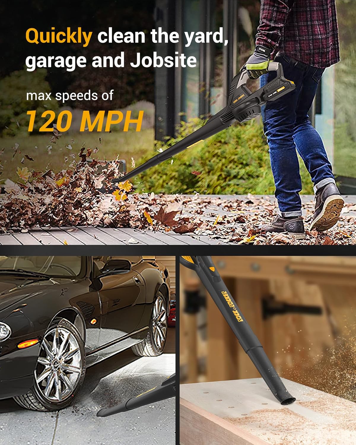 Cordless Leaf Blower with 2 X 20V Battery and Charger, Rock&Rocker Electric Leaf Blower 120MPH/170CFM 6 Adjustable Speeds and 2 Adjustable Tubes for Lawn Care/Yard/Jobsite/Patio
