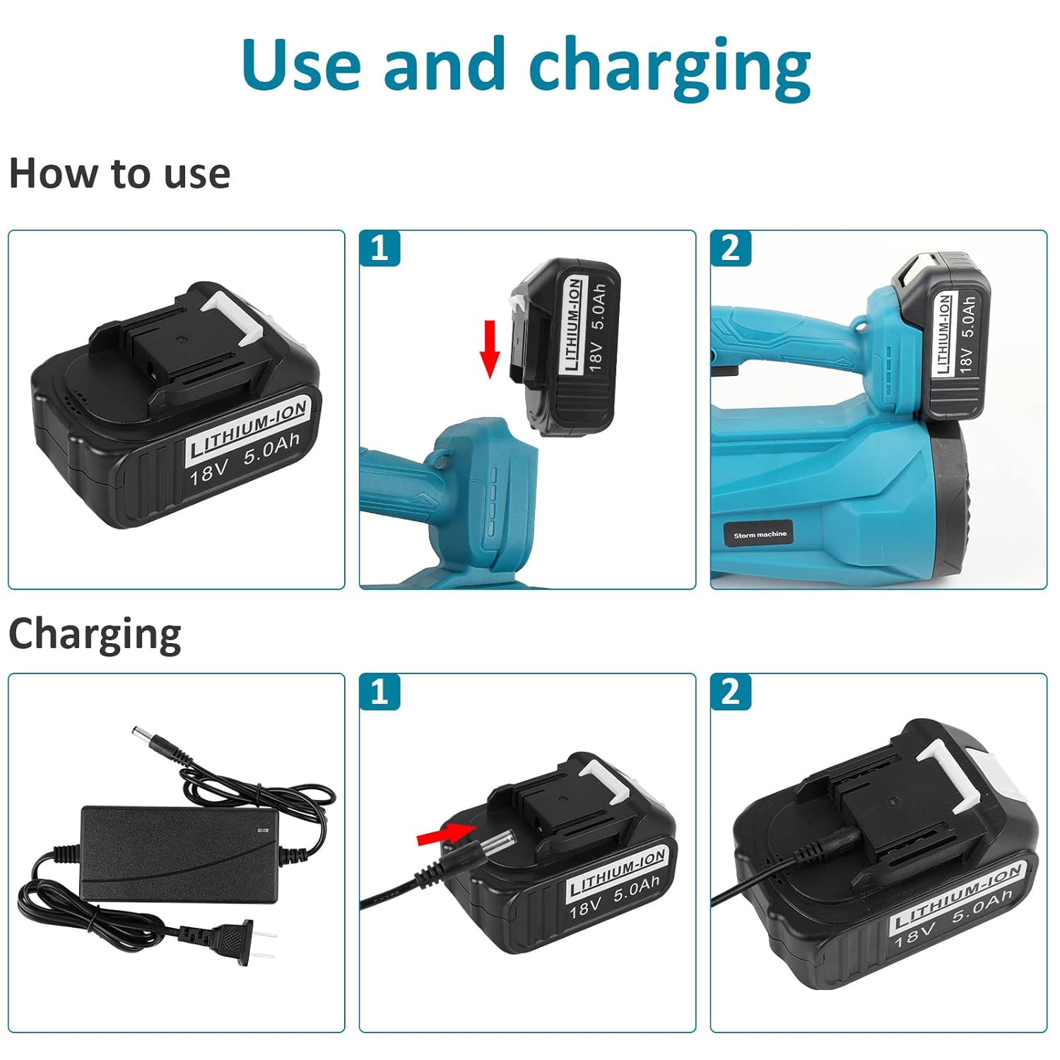 Cordless Leaf Blower with 2 X 5.0 Battery & Charger,460CFM 6 Adjustable Speeds and 2 Adjustable Tubes,Battery Powered Leaf Blower Lightweight for Snow Blowing & Yard Cleaning