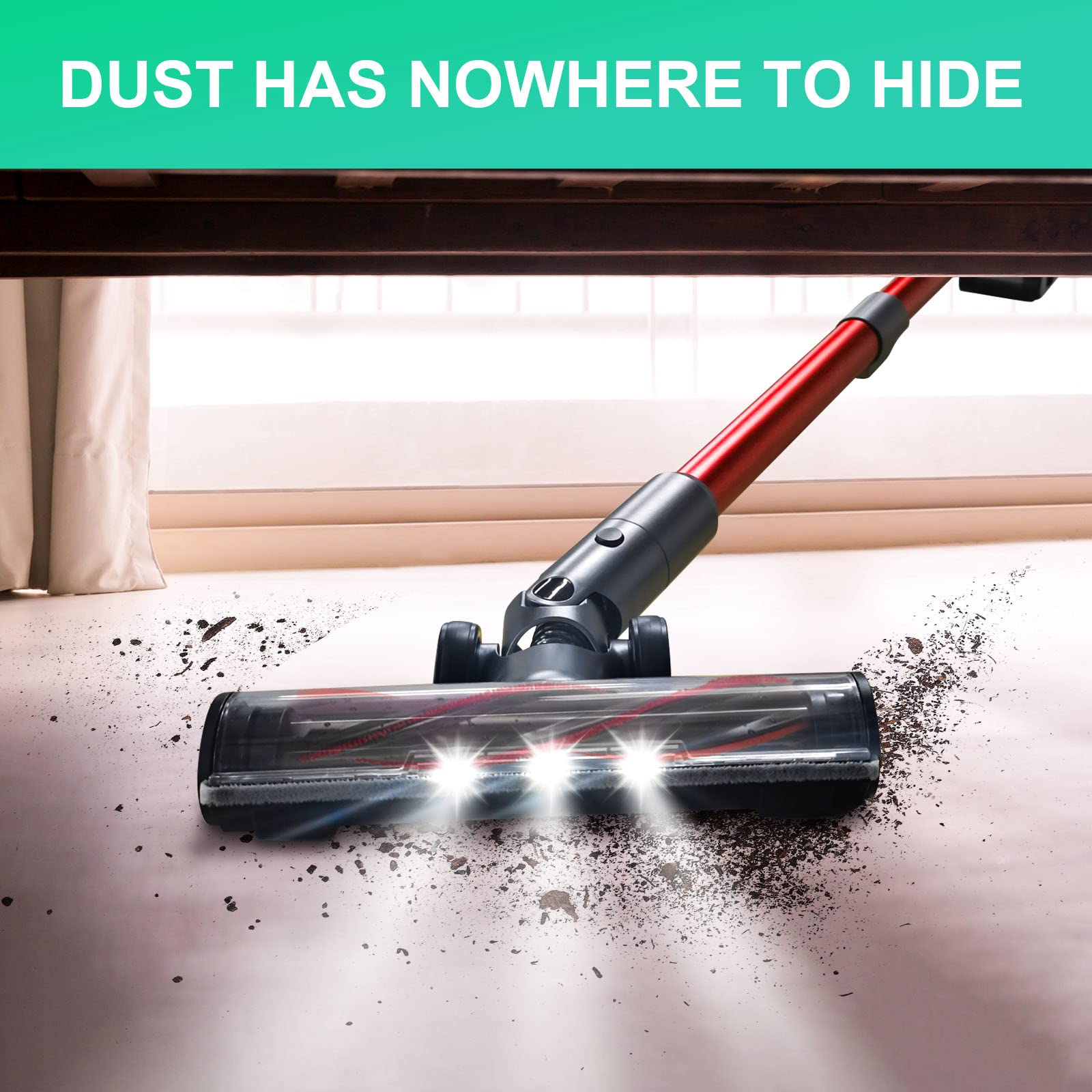Cordless Stick Vacuum Cleaner, 55 Minutes Runtime, 450W Motor, Led Touch Display, Dust Sensor Technology, Adjustable 7 Power Modes For Hardwood Floors, Carpet, Pet Haire21 Pro, Red