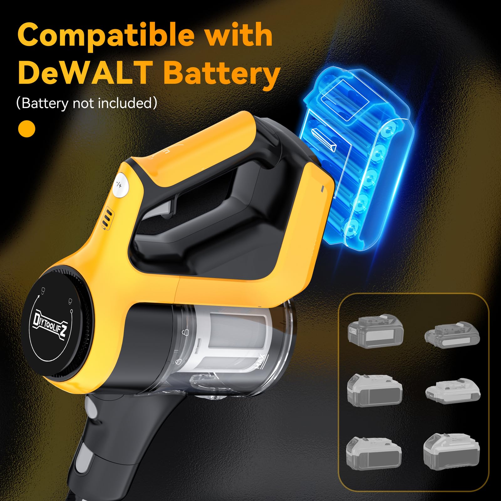 Cordless Vacuum Cleaner, 250W 20Kpa Stick Vacuum For Dewalt 20V18V Battery, 2 Mode Suction, 6In1 Lightweight Vacuum For Hardwood Floor Carpet Car Petbattery Not Include