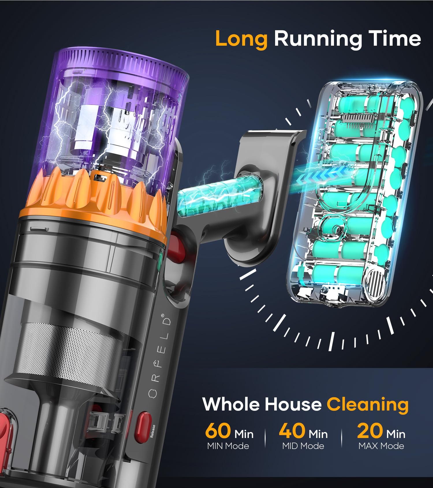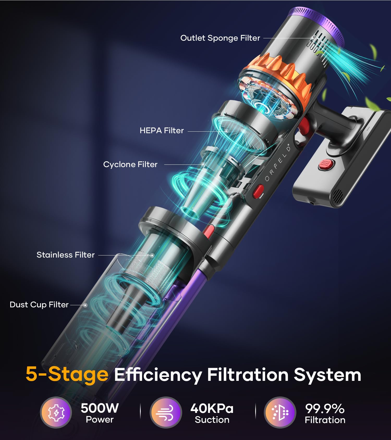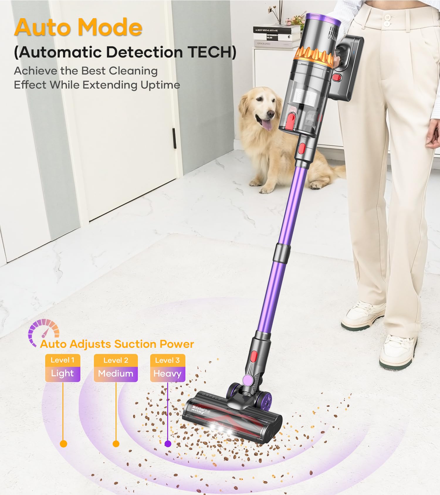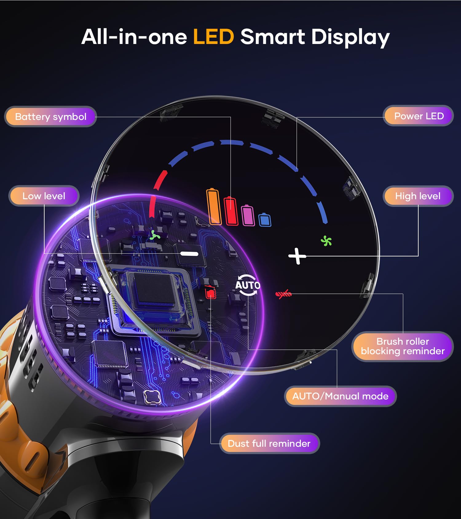 Cordless Vacuum Cleaner, 500W40Kpa Stick Vacuum With Smart Display, Max 60Mins Runtime Vacuum Cleaner For Home, Auto Mode & Antitangle, Lightweight Vacuum For Carpet Hardwood Floor Pet Hair