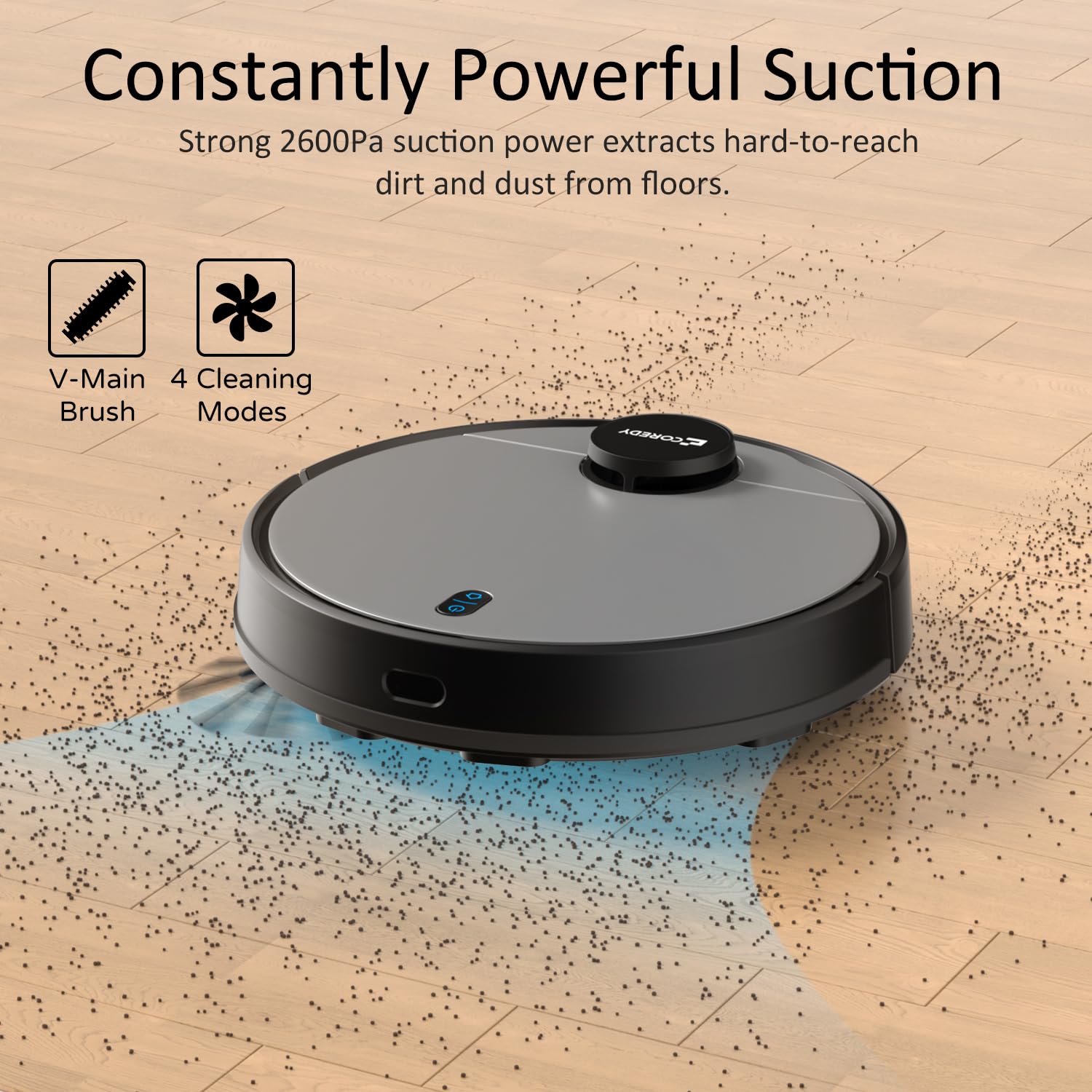 Coredy Sl200 Robot Vacuum, Cuttingedge Laser Navigation, 2600Pa Turbo Suction, 450Ml Dustbin, 120Mins Runtime, Mapping X 5, Wifialexa Robotic Vacuum Cleaner, Cleans Floors And Carpets, Pets Hair