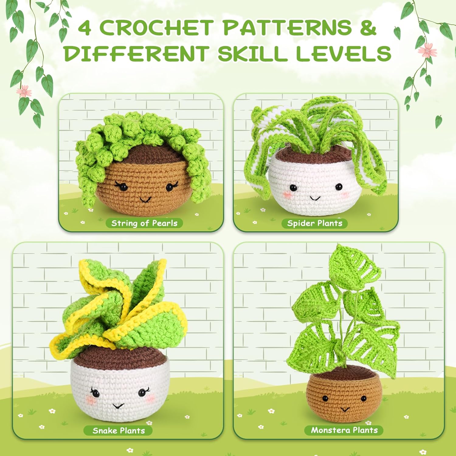 Crochetta Crochet Kit for Beginners, Crochet Starter Kits for Adults with Step-by-Step Video Tutorials, Learn to Crochet Kit, Knitting Craft Supplies, Crochet Plants Indoor Home Decor(40%+ Yarn)