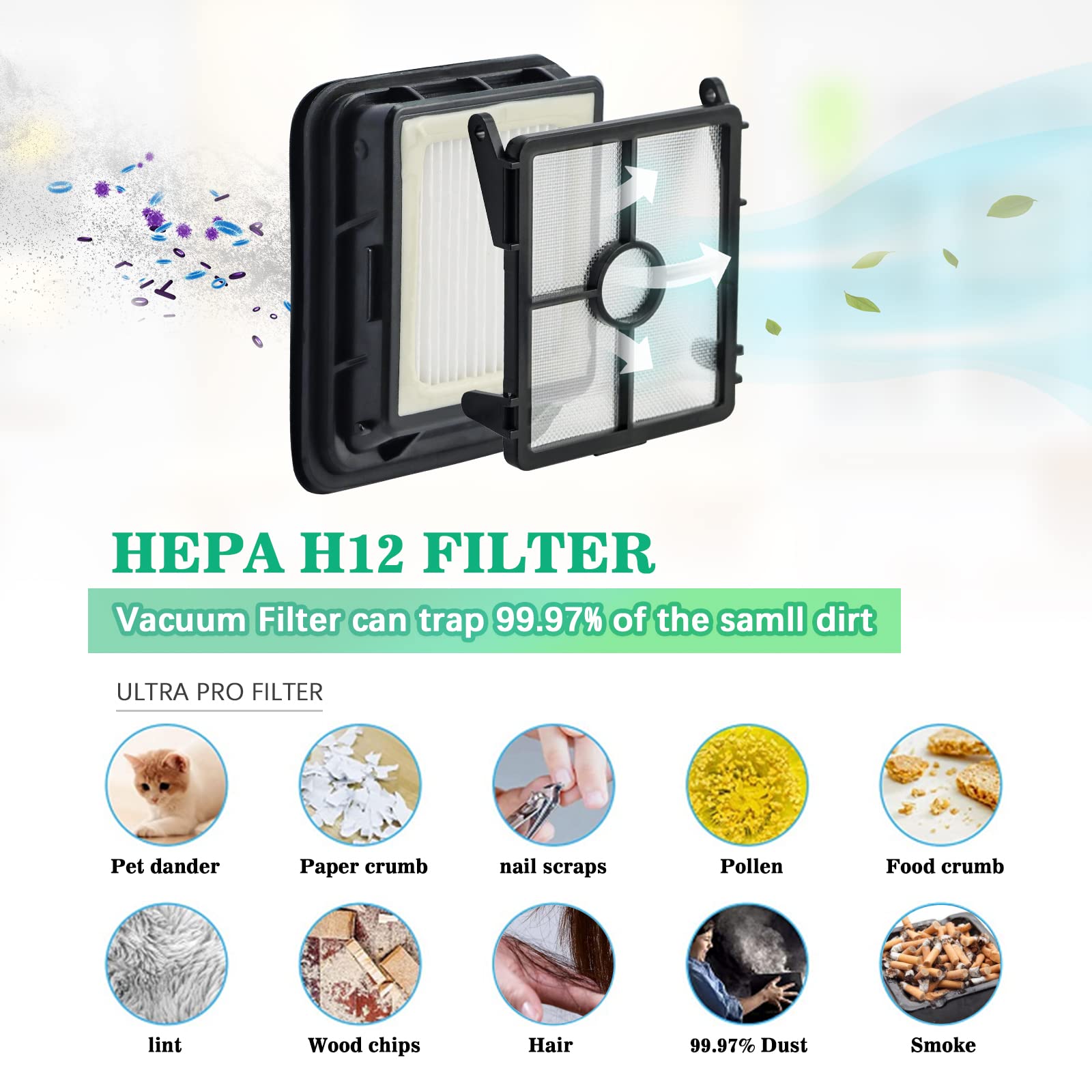• Valueable Vacuum Cleaner Accessories Package : Includes 3 packs cross wave brush & 3 packs 1866 cross wave filter, 1 cleaning tool, Our cross wave parts capture a variety of fibers, debris, cotton wool, hair, dirt, bread crumbs, cookie, crumbs, paper scraps, fruit and vegetable crumbs, even trapping many dirt as small as 0.3 μm in size, A powerful helper for daily houseoffice cleaning