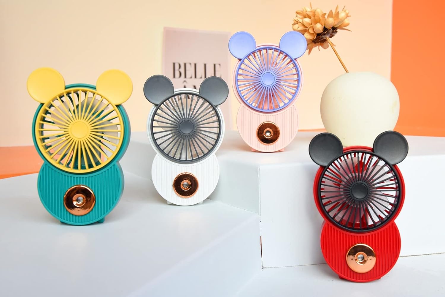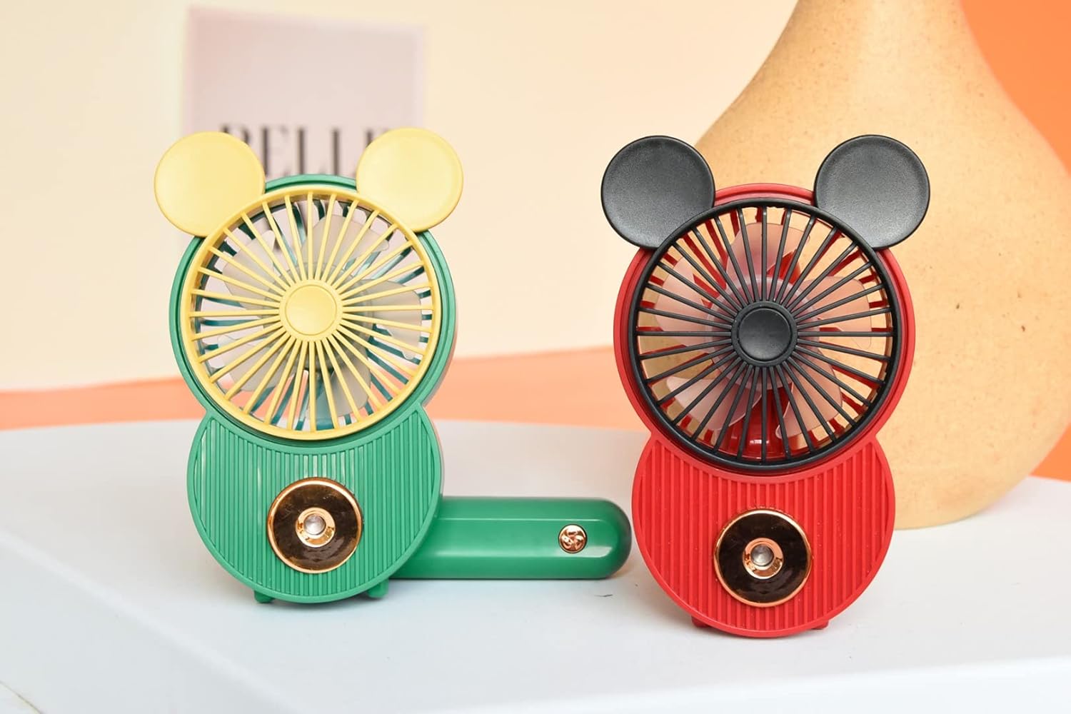 Cute Mickey Misting Mini Fan, Handheld Portable Usb Rechargeable Fan With 3 Adjustable Speeds, Foldable Personal Fan For Travel