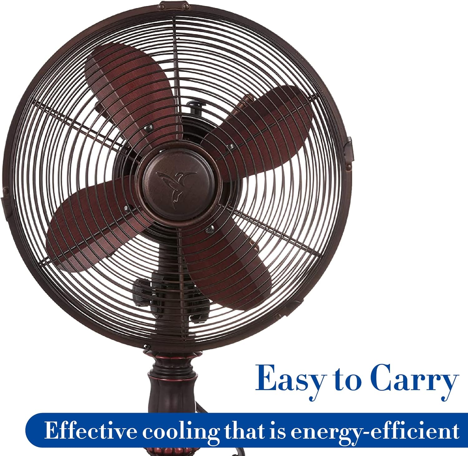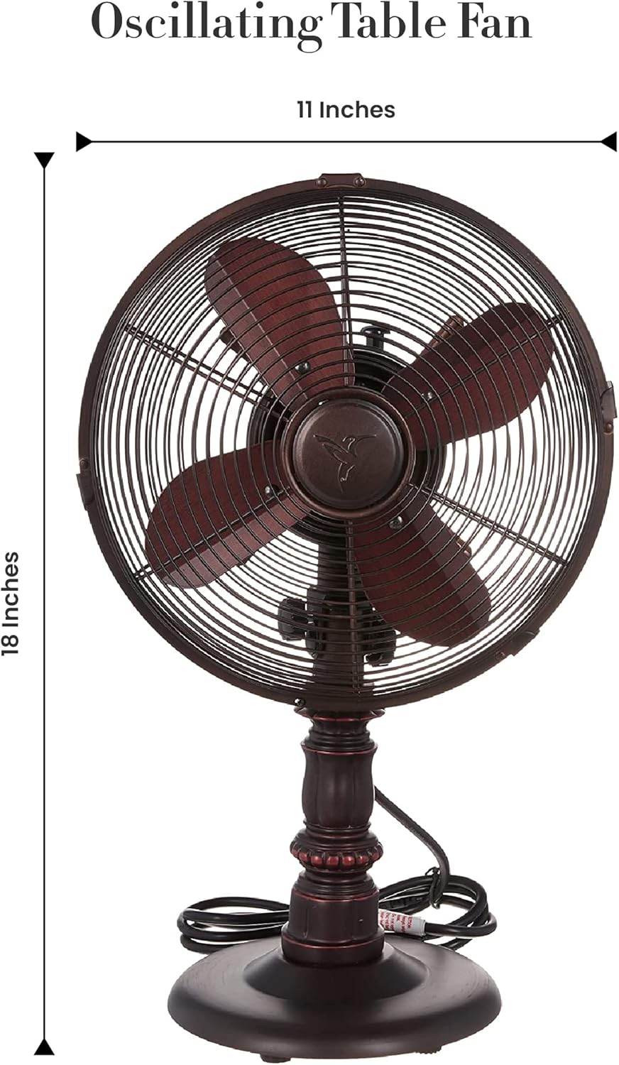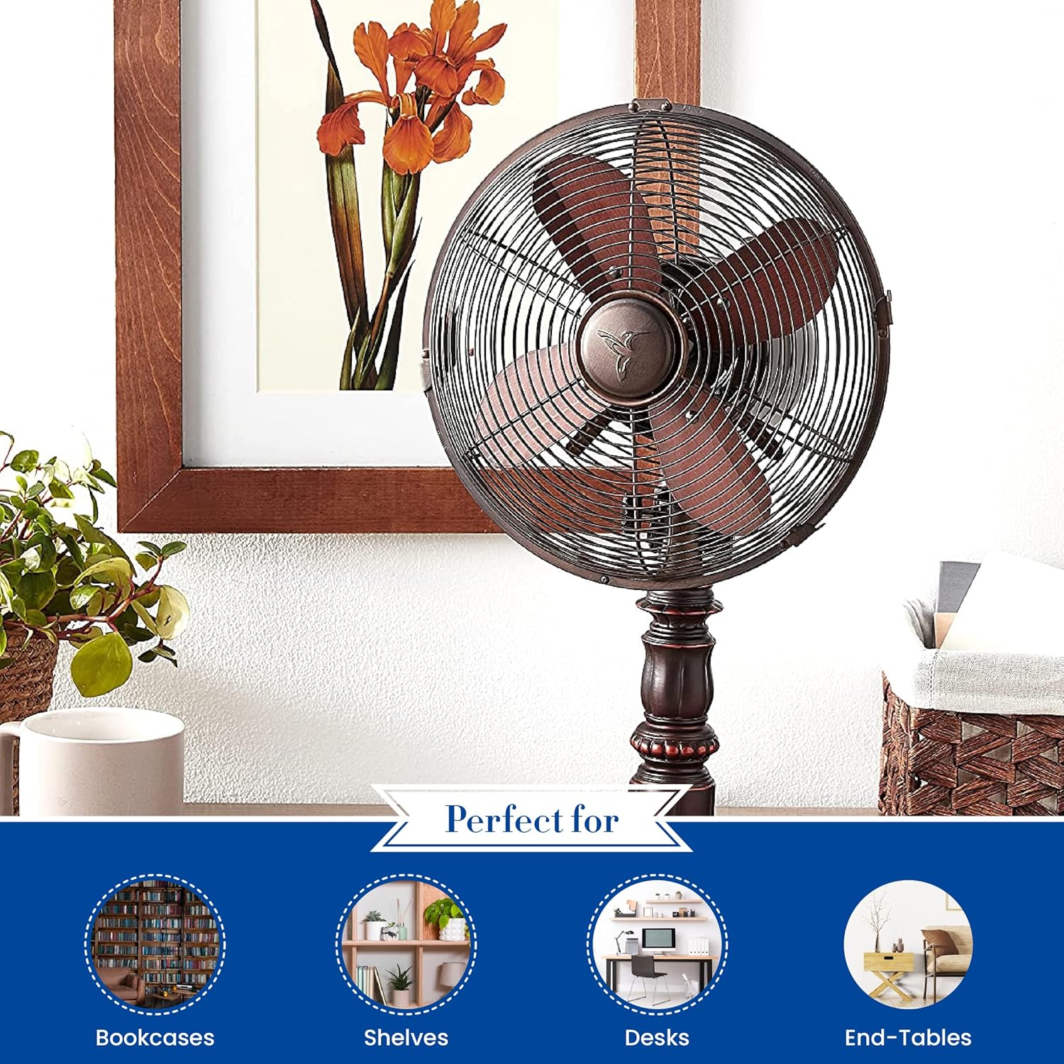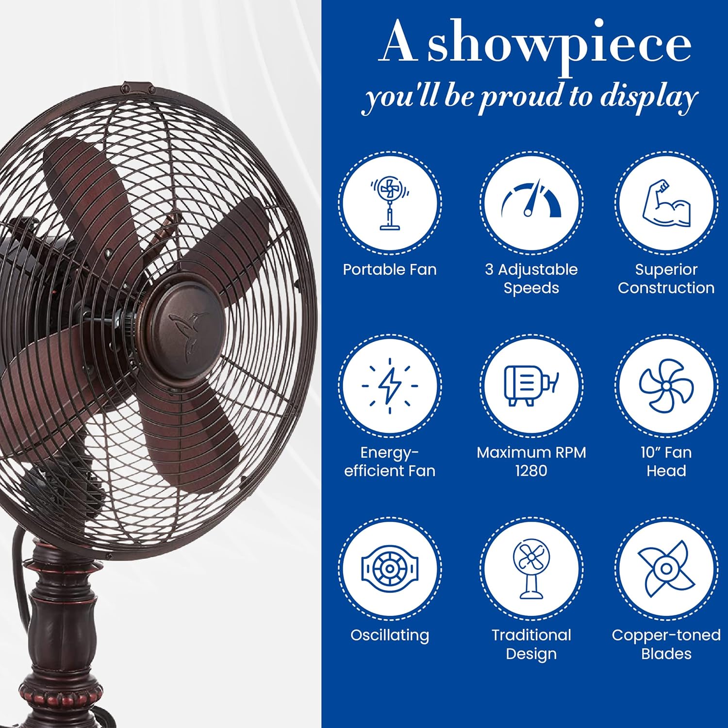Decobreeze Oscillating Table Fan, 3 Speed Portable Fan, Kipling, Antique Metal Fan, 10 Inches