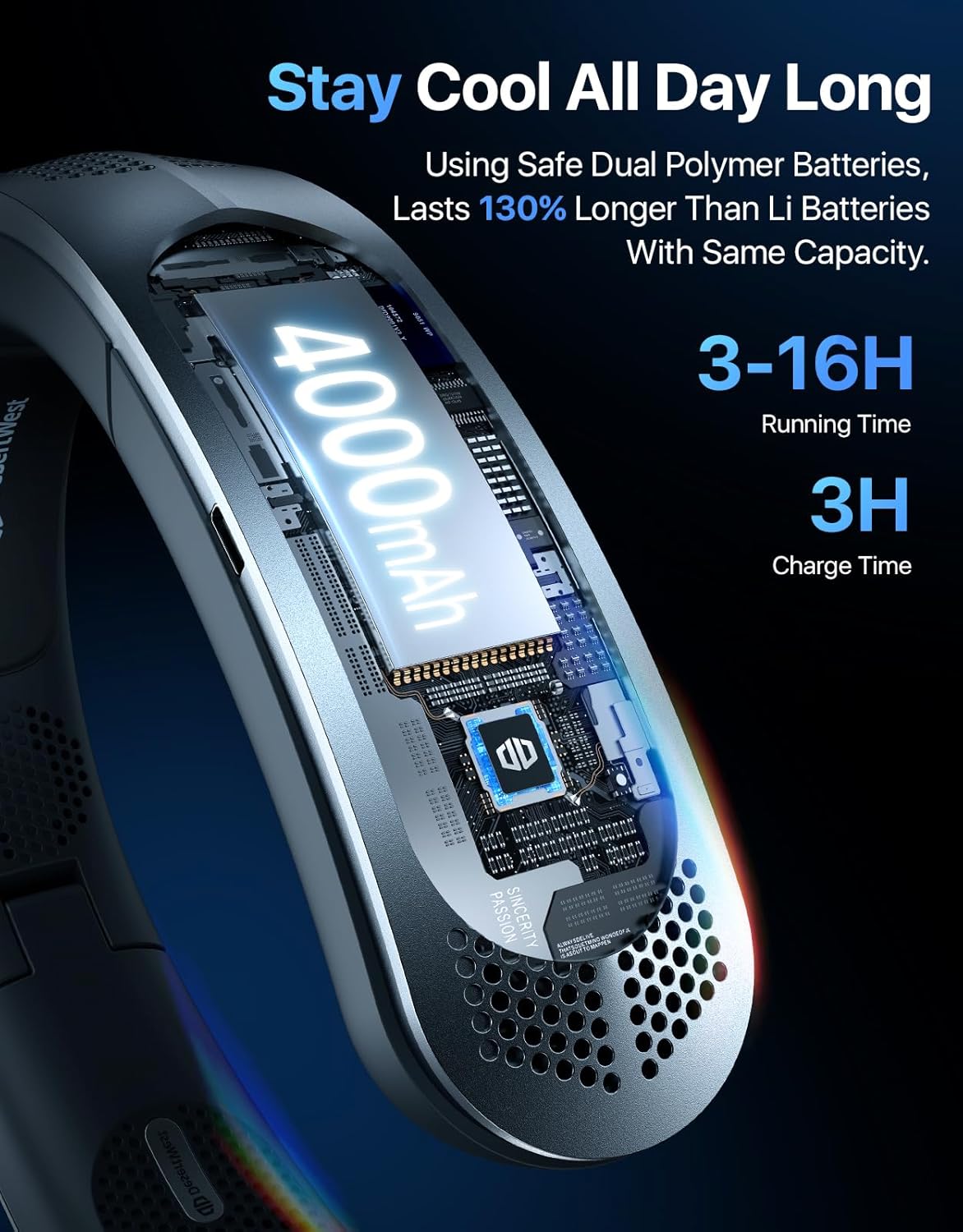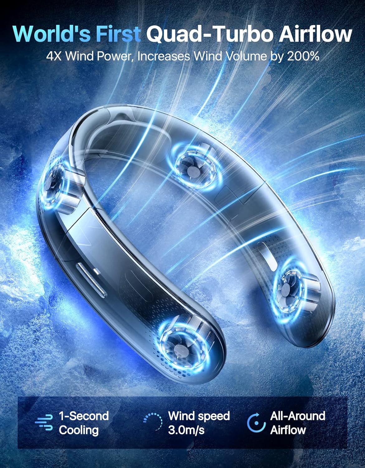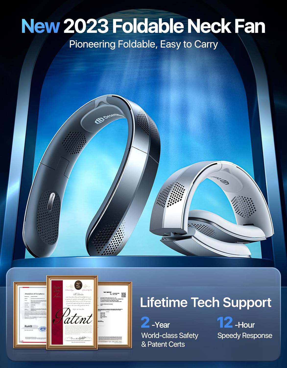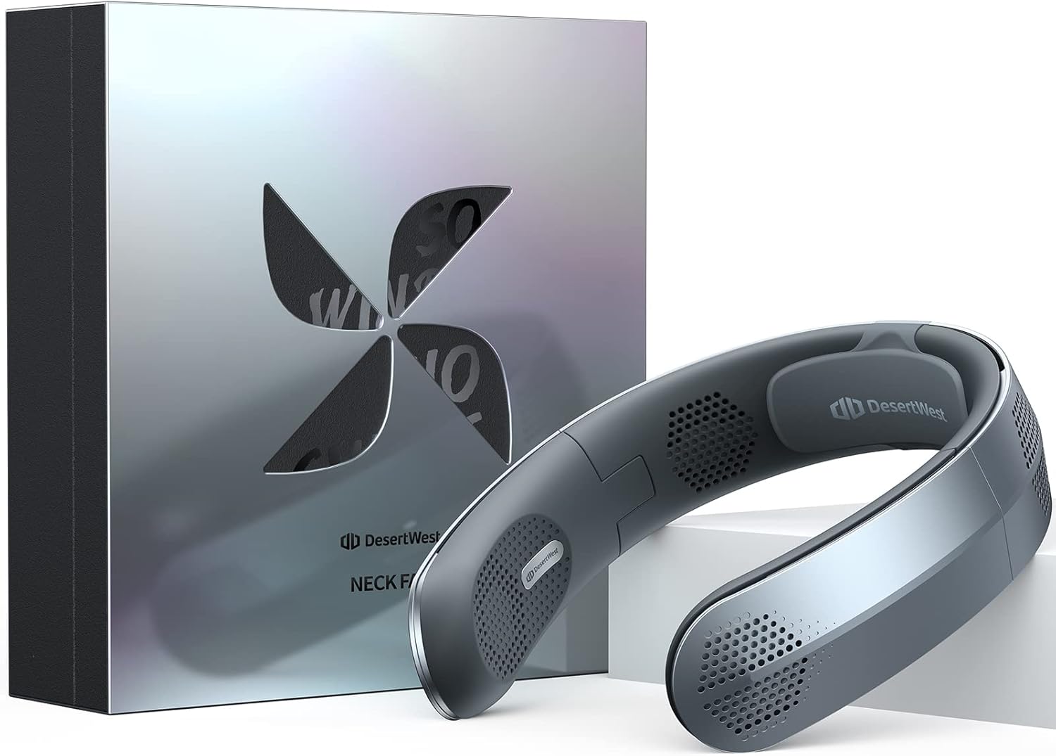 Desertwest 2024 Flagship Foldable Neck Fan, Innovation 8AirDuct, 360° Cooling, 4X Wind Power, UsbC Charging 4000Mah, Portable